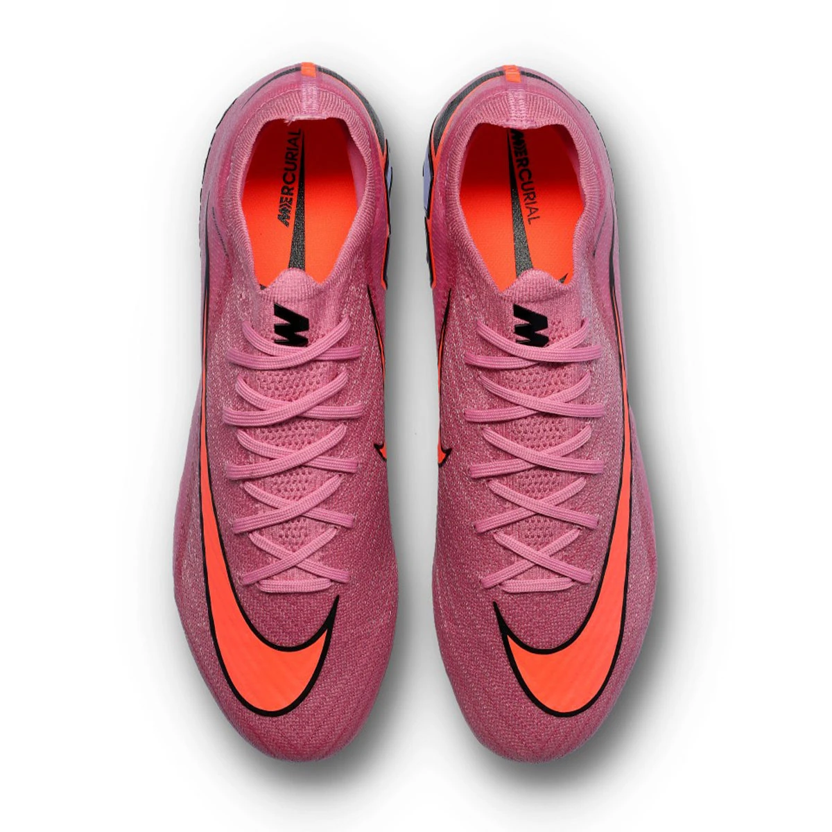 Chaussures de football Nike Air Zoom Mercurial Vapor 16 Elite AG-Pro pour adultes. Chaussures en mesh, sans col montante, conçues pour jouer sur gazon artificiel. Modèle haut de gamme pour joueurs rapides, en coloris Magic Flamingo-Black-Total Crimson.