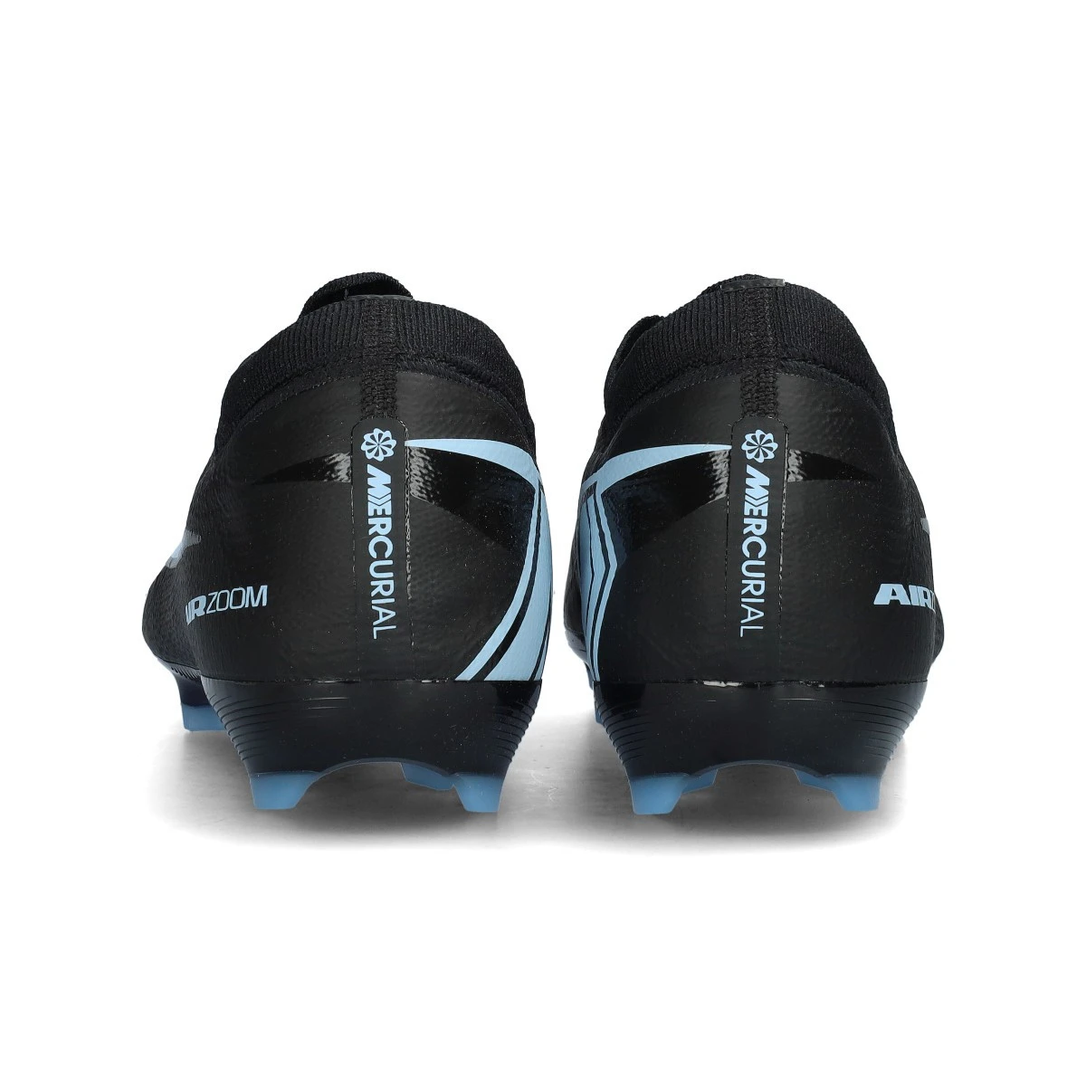 Nike Zoom Mercurial Vapor 16 Pro FG – Chaussures de football en fil conçues pour une utilisation sur terrains en gazon naturel. Chaussures haut de gamme en coloris Black-Ice Blue.