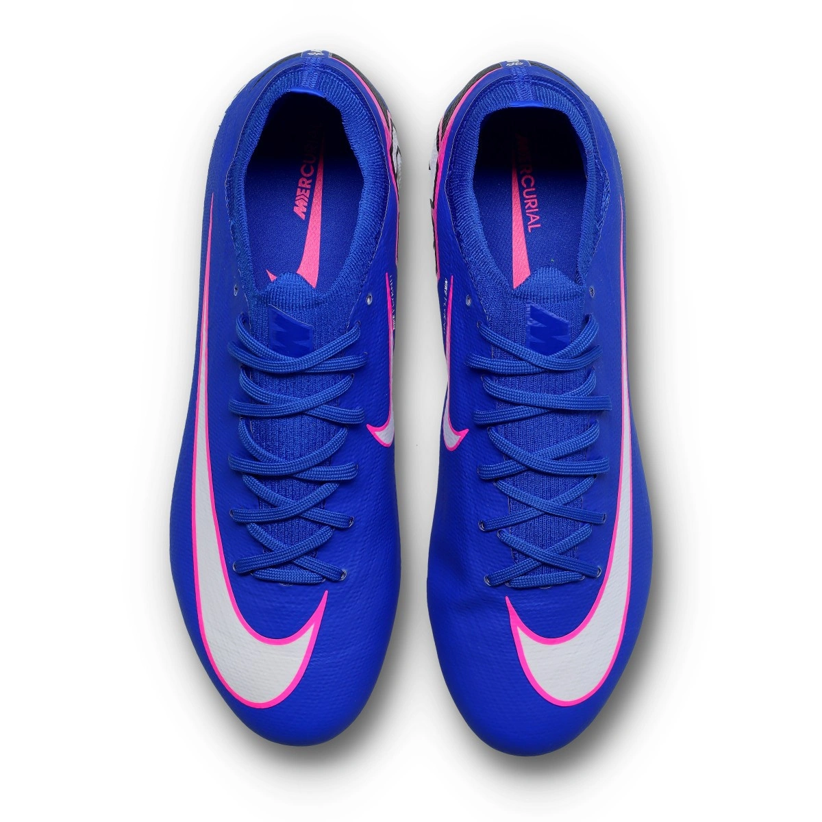 Chaussure de football Air Nike Zoom Mercurial Vapor 16 Pro FG. Chaussures en knit à utiliser sur terrains en herbe naturelle. Chaussures haut de gamme en couleur Racer Blue-White.