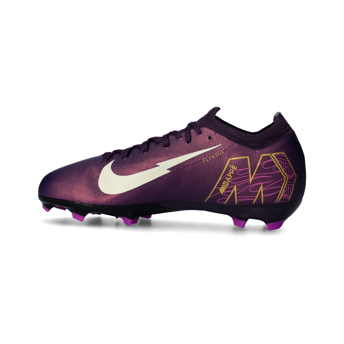 Chaussures de football Nike Air Zoom Mercurial Vapor 16 Pro KM FG pour garçon. Chaussures à lacets à utiliser sur des terrains en gazon naturel. Chaussures de gamme moyenne de couleur Grand Purple-Pale Ivory.