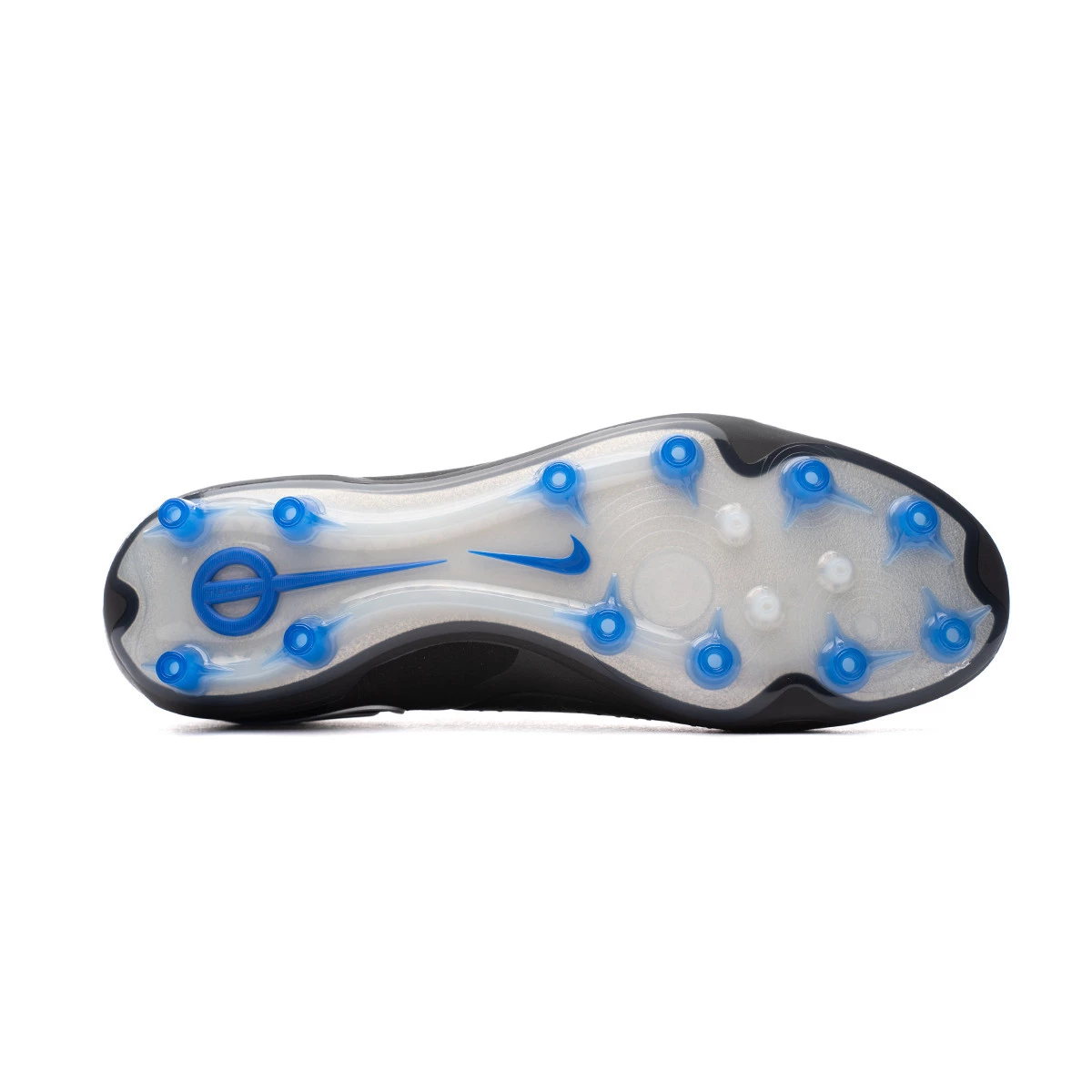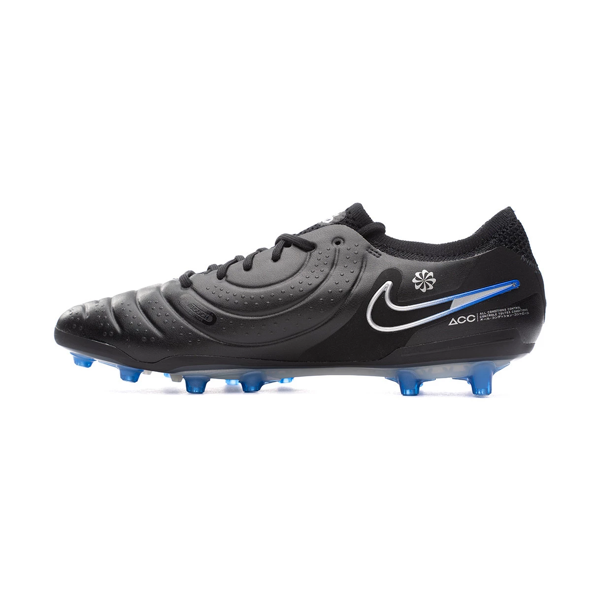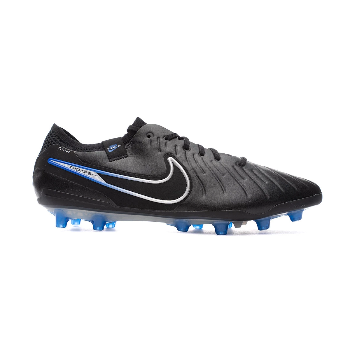 Nike Tiempo 10 Elite AG chaussures à utiliser sur gazon artificiel. Chaussures haut de gamme en Black-Chrome-Hyper Royal.