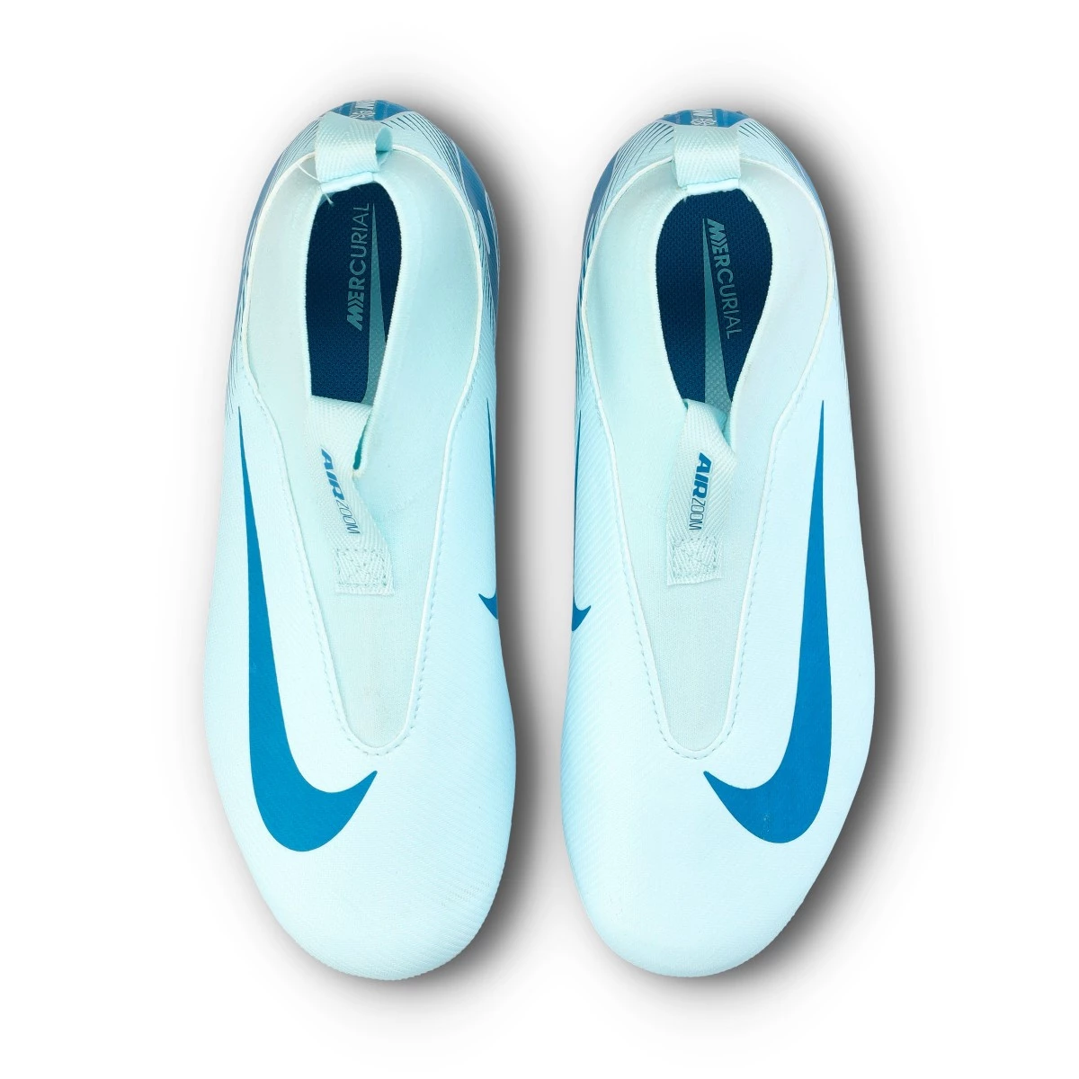 Chaussures Nike Zoom Mercurial Superfly 10 AG Academy pour enfant.  Chaussures en fil, à utiliser sur les terrains en gazon artificiel ou en moquette. Chaussures de la gamme de base en coloris Glacier Blue-Blue Orbit.