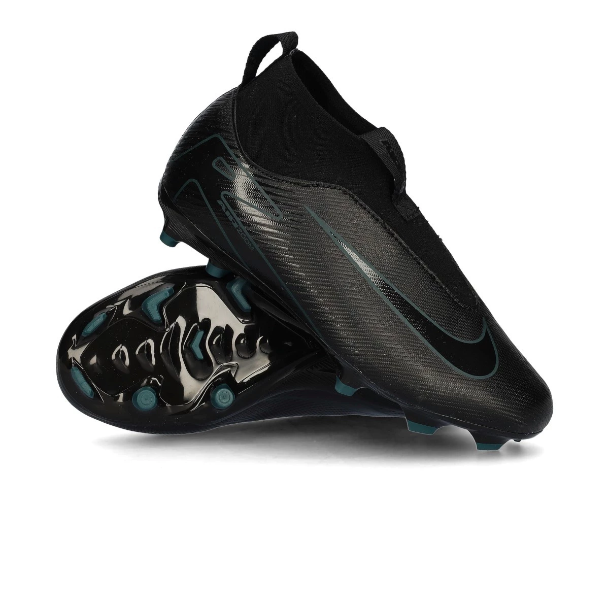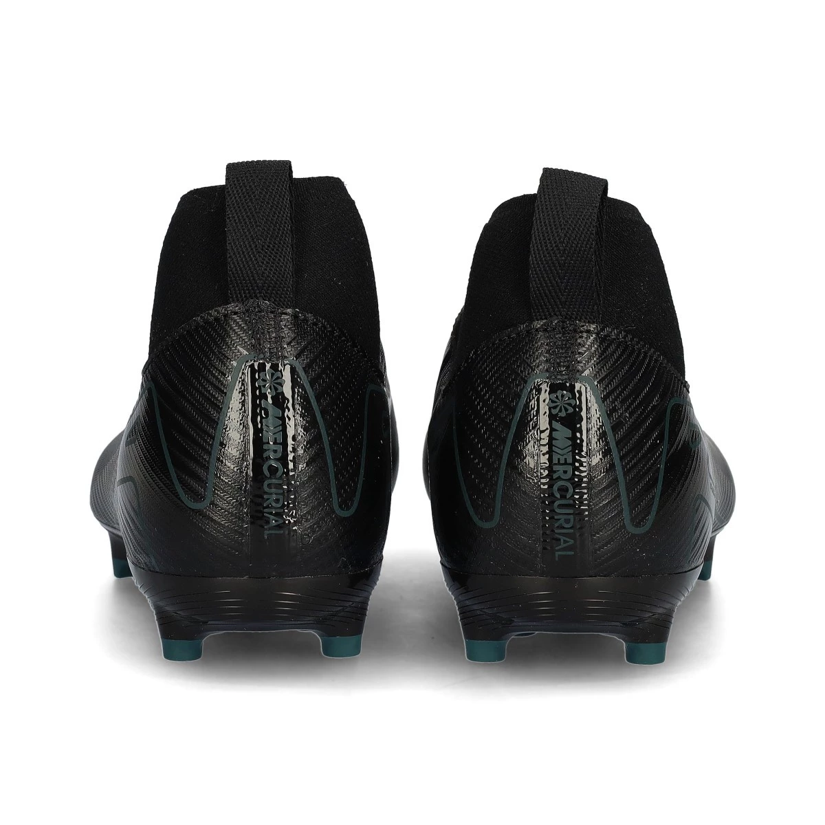 Chaussures Nike Zoom Mercurial Superfly 10 Academy FG/MG pour enfant. Chaussures en fil, à utiliser sur les terrains en gazon artificiel ou naturel. Chaussures de la gamme de base en coloris Black-Black-Deep Jungle.