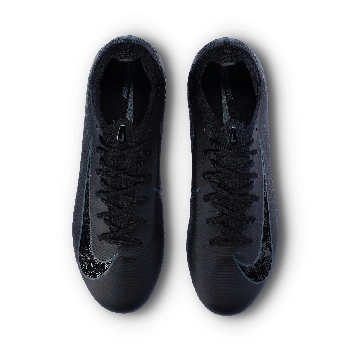 Chaussures de football Nike Air Zoom Mercurial Vapor 16 AG-Pro. Chaussures à lacets à utiliser sur les terrains en gazon artificiel. Chaussures haut de gamme en Black-Black-Deep Jungle.