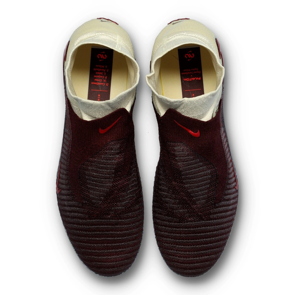 Chaussure de football Nike Phantom 6 High Elite FG pour adultes. Chaussures haut de gamme avec tige montante pour les joueurs de contrôle et de précision en coloris Burgundy Crush-Univ Red-Fossil pour terrains en gazon naturel.