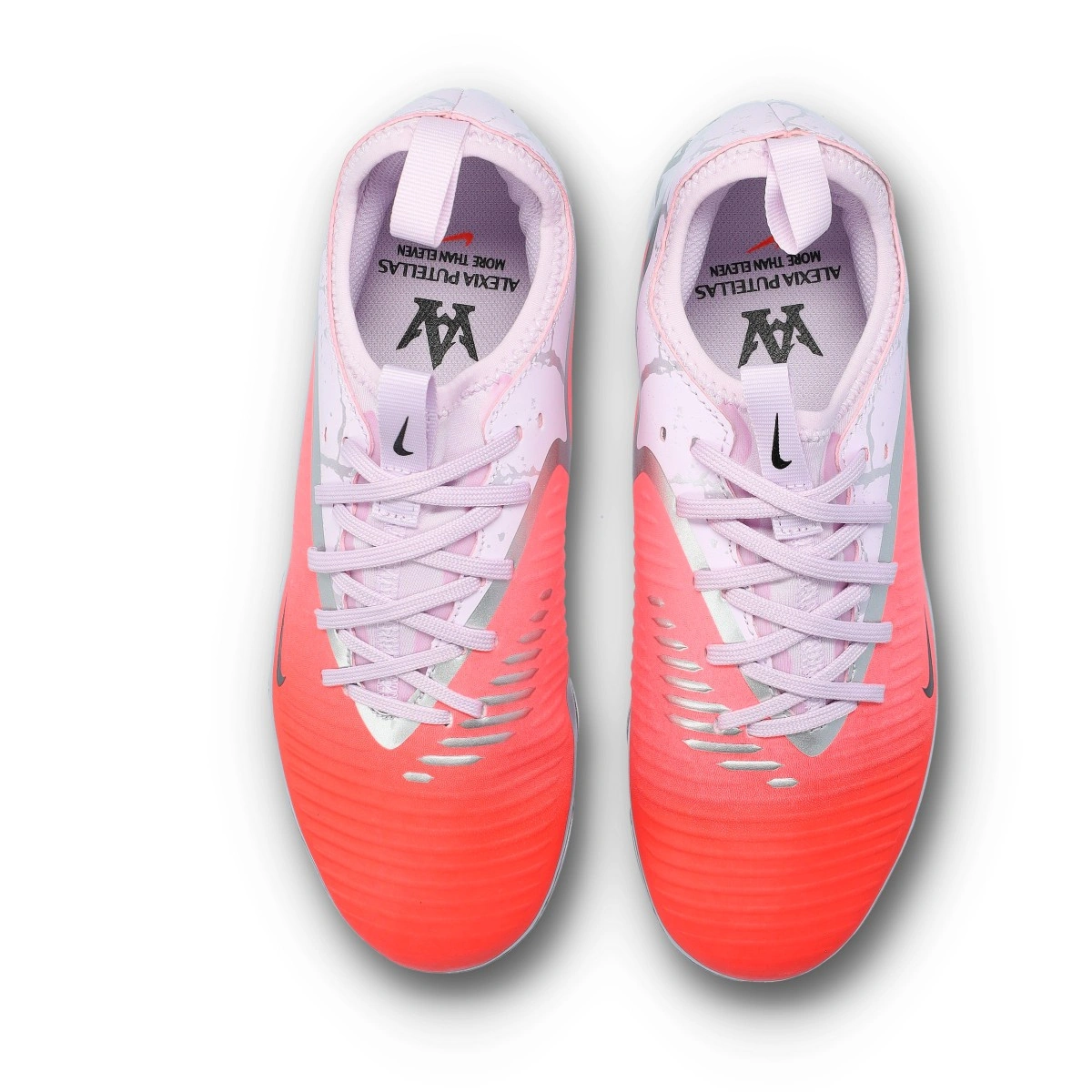 La Nike Phantom Alexia Putellas est née comme un hommage à la footballeuse qui transforme chaque match en une œuvre d'art. Vision, calme et précision se combinent dans une chaussure conçue pour dominer le ballon et le temps, exactement comme elle le fait sur le terrain. Ne manquez pas l'occasion et dominez le terrain de la même manière que la reine du football !