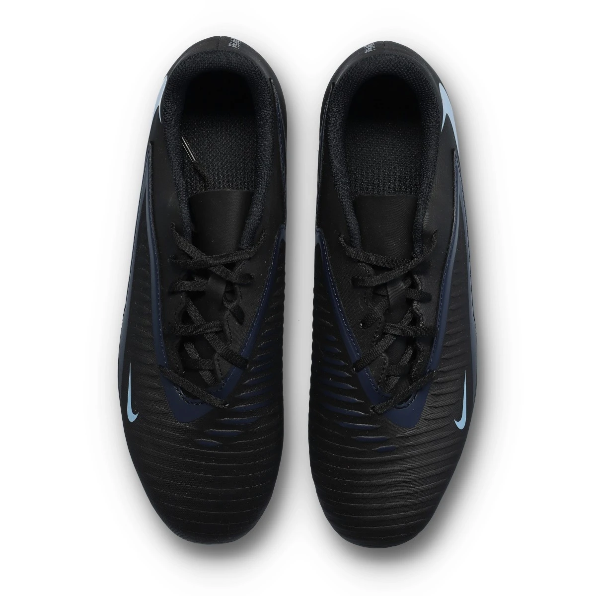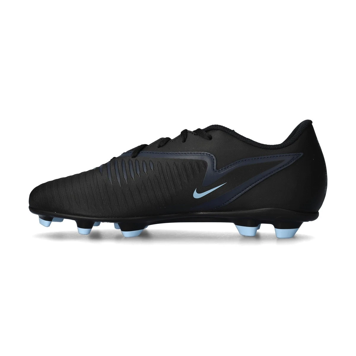 Chaussures de football Nike Phantom 6 Low Club FG/MG. Chaussures en tissu, sans chausson, conçues pour terrains en herbe naturelle sèche ou gazon artificiel de première génération. Modèle haut de gamme pour les joueurs axés sur le contrôle et la précision, en coloris Black-Black.