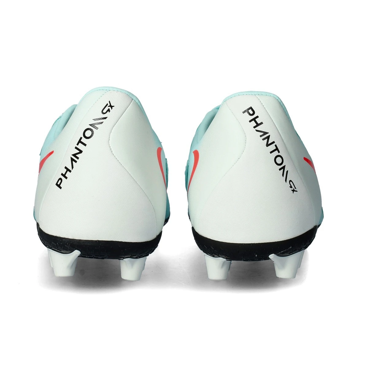 Chaussures de football Nike Phantom GX II Academy. Chaussure d'entrée de gamme pour les terrains en gazon artificiel en Mint-Atomic Red-Off Noir.