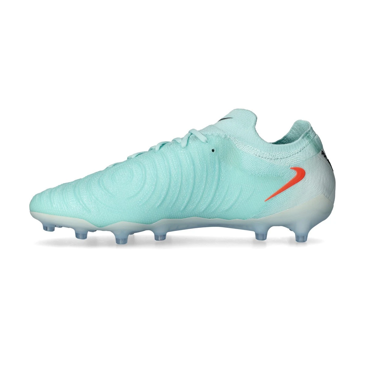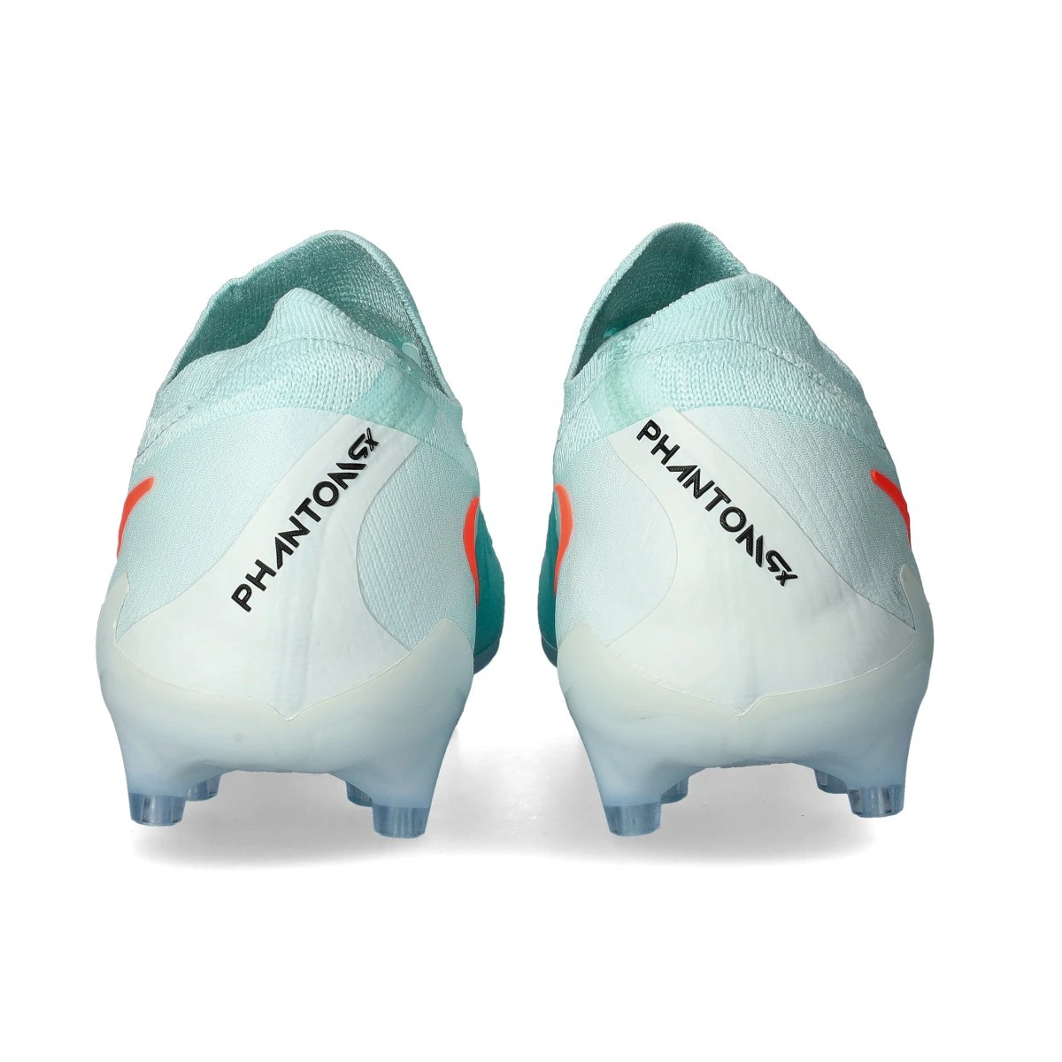 Chaussures de football Nike Phantom GX ll Elite AG-Pro. Chaussures en fil avec chaussette, à utiliser sur les terrains en gazon artificiel en coloris Mint-Atomic Red-Off Noir.