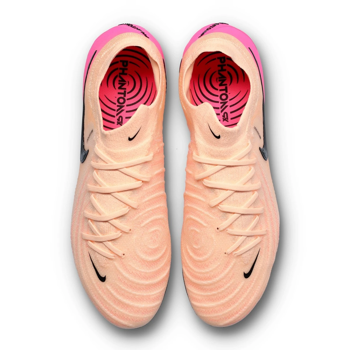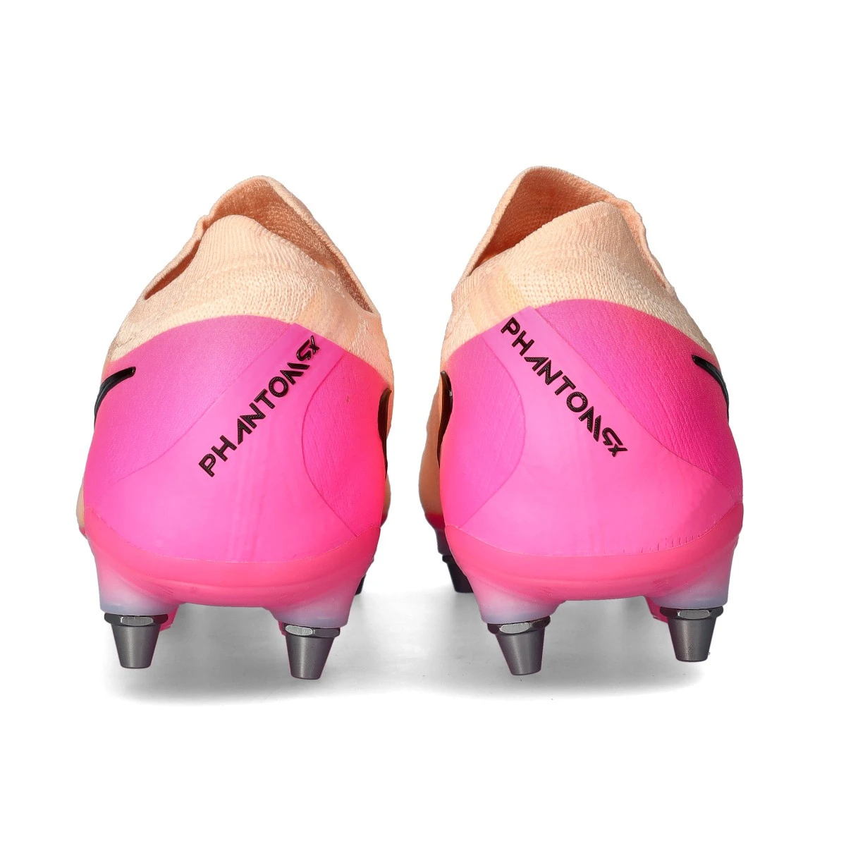 Chaussures de football Phantom Gx II Elite SG-Pro pour adultes. Chaussure filetée pour utilisation sur gazon naturel humide ou terrains souples. Chaussures haut de gamme pour les joueurs de contrôle et de précision en coloris Crimson Tint-Black-Pink Blast.