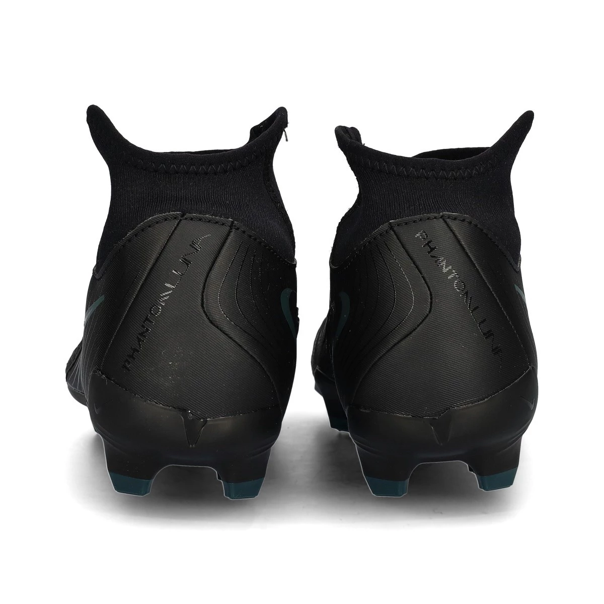 Chaussures de football Nike Phantom Luna II Academy FG/MG. Chaussure montante en fil, à utiliser sur gazon naturel sec ou humide ou sur gazon artificiel. Chaussures bas de gamme pour les joueurs de contrôle et de précision en coloris Black-Black-Deep Jungle.