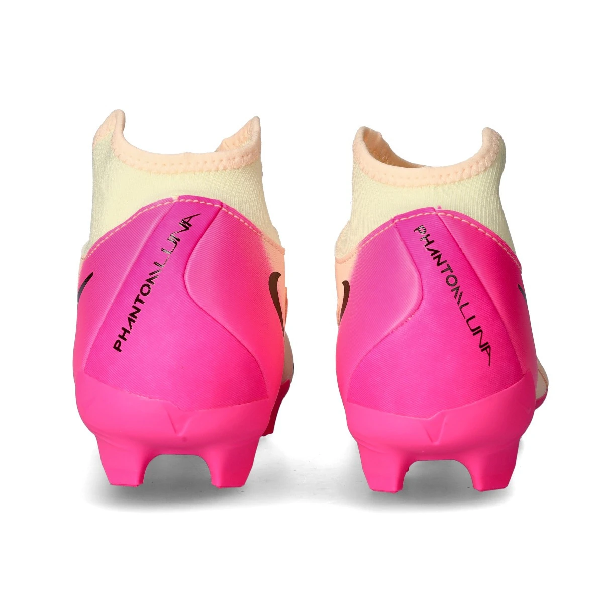 Chaussures de football Nike Phantom Luna II Academy FG/MG. Chaussure à chaussettes, à utiliser sur gazon naturel sec ou humide ou sur gazon artificiel. Chaussure de base pour les joueurs de contrôle et de précision en couleur Crimson Tint-Black-Pink Blast.