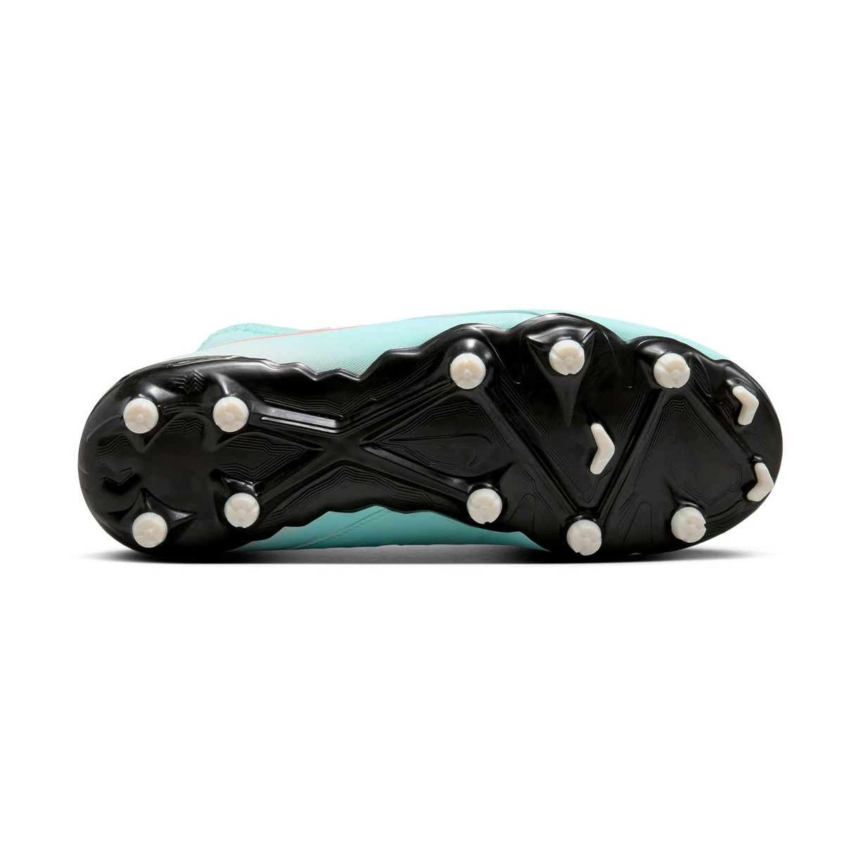 Chaussures de football Nike Phantom Luna II Academy FG/MG pour enfants. Chaussure à chaussettes à utiliser sur gazon naturel sec ou humide ou sur gazon artificiel. Chaussures bas de gamme pour les joueurs de contrôle et de précision en couleur Mint-Atomic Red-Off Noir.