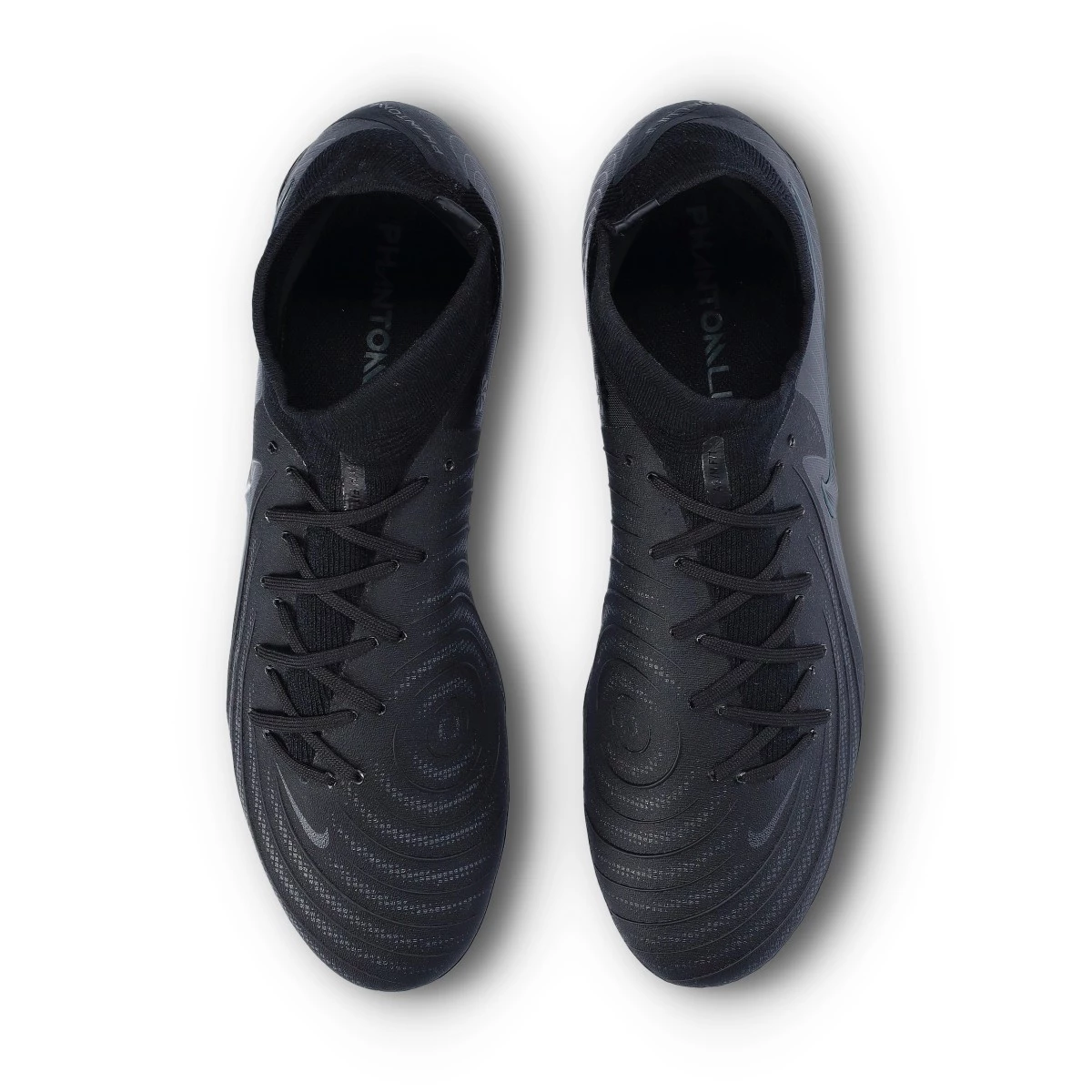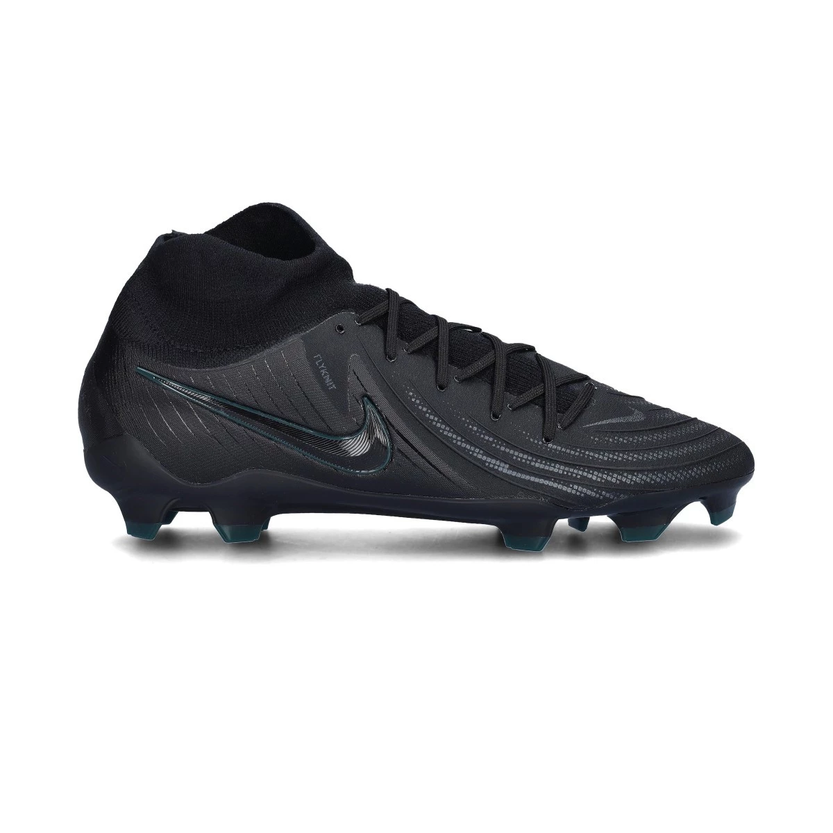 Chaussure de football Nike Phantom Luna ll Pro FG. Une chaussure à lacets, à utiliser sur les terrains en gazon naturel secs ou mouillés. Chaussures haut de gamme pour les joueurs de contrôle et de précision, en Black-Black-Deep Jungle.