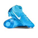 Chaussure de football Nike Phantom Luna ll Pro FG. Chaussure montante en fil, à utiliser sur les terrains en gazon naturel secs ou humides. Chaussures haut de gamme pour les joueurs de contrôle et de précision en Blue Fury-White.