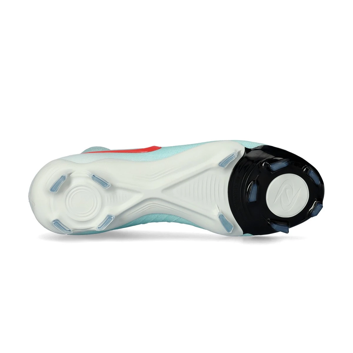 Chaussures de football Nike Phantom Luna ll Pro FG pour adultes. Chaussure filetée avec chaussette, pour une utilisation sur des terrains en gazon naturel secs ou humides. Chaussures haut de gamme pour les joueurs de contrôle et de précision en couleur Mint-Atomic Red-Off Noir.