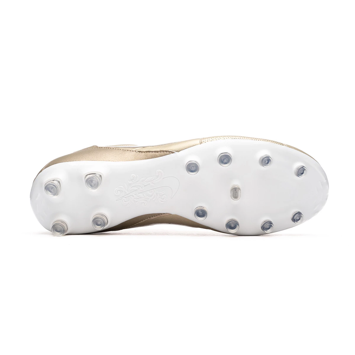 Chaussure de football The Nike Premier III FG. Chaussure en cuir de kangourou parfaite pour les joueurs de vitesse en couleur Metalic Gold Grain-White-Mtlc Gold Grain.