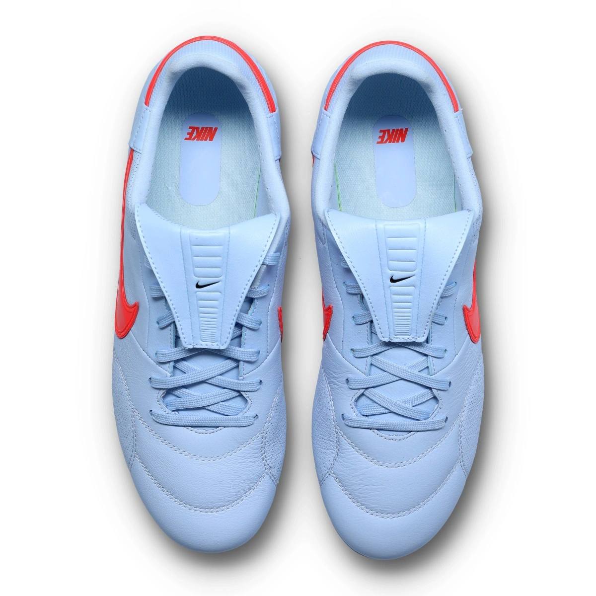 La chaussure de football Nike Premier III FG pour adultes. Chaussures en cuir de kangourou parfaite pour les joueurs rapides en Royal Tint-Brt Crimson