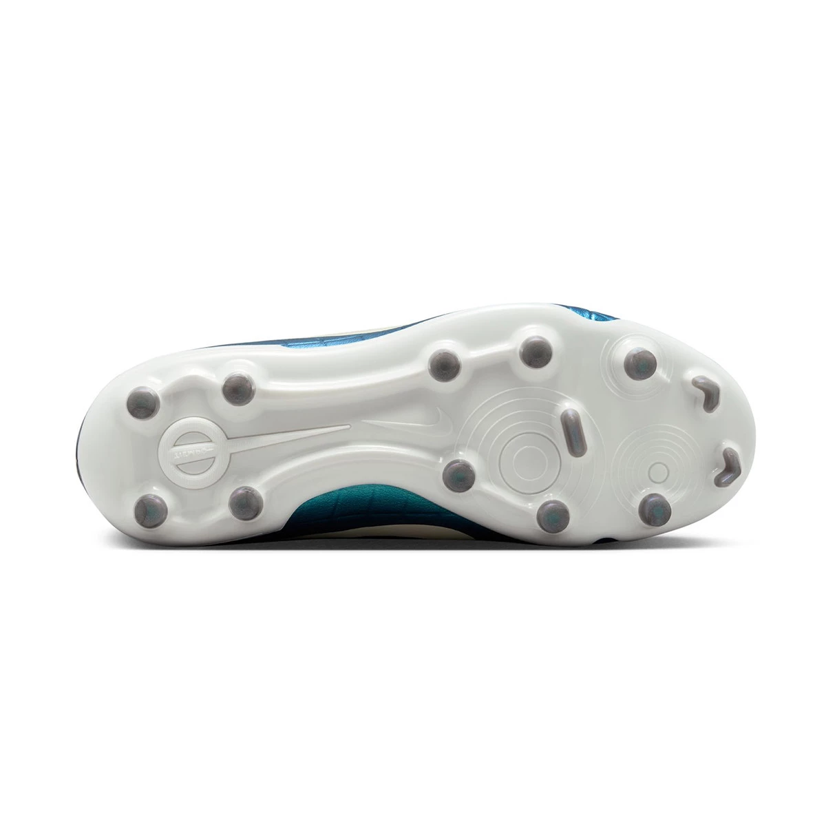Chaussures de football Nike Legend 10 Academy FG/MG pour enfants. Chaussures à utiliser sur des terrains en gazon naturel ou artificiel. Chaussures de la gamme de base en couleur Dk Atomic Teal-Sail.