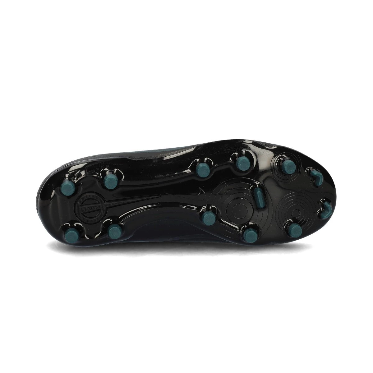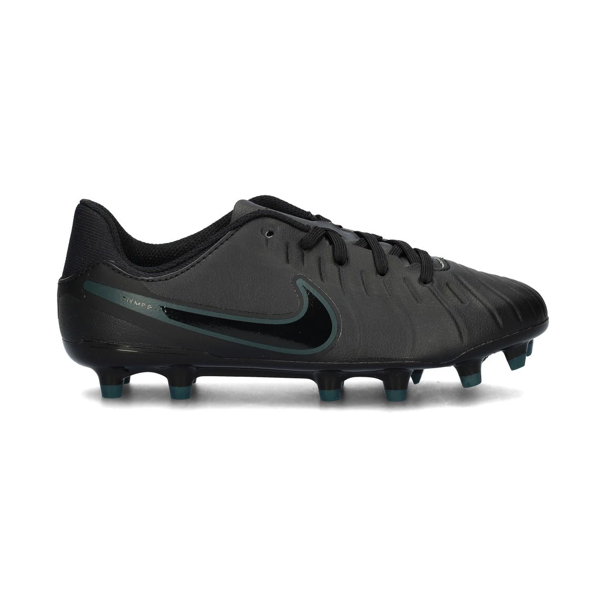 Chaussures de football Nike Legend 10 Academy FG/MG pour enfant. Chaussures à utiliser sur des terrains en gazon naturel ou artificiel. Chaussures de la gamme de base en Black-Black-Deep Jungle