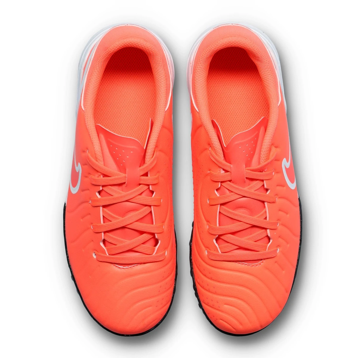 Chaussures de football Nike Legend 10 Academy Turf pour garçons. Chaussures en cuir synthétique pour l'extérieur. Chaussures de la gamme de base en couleur Hot Lava-White.