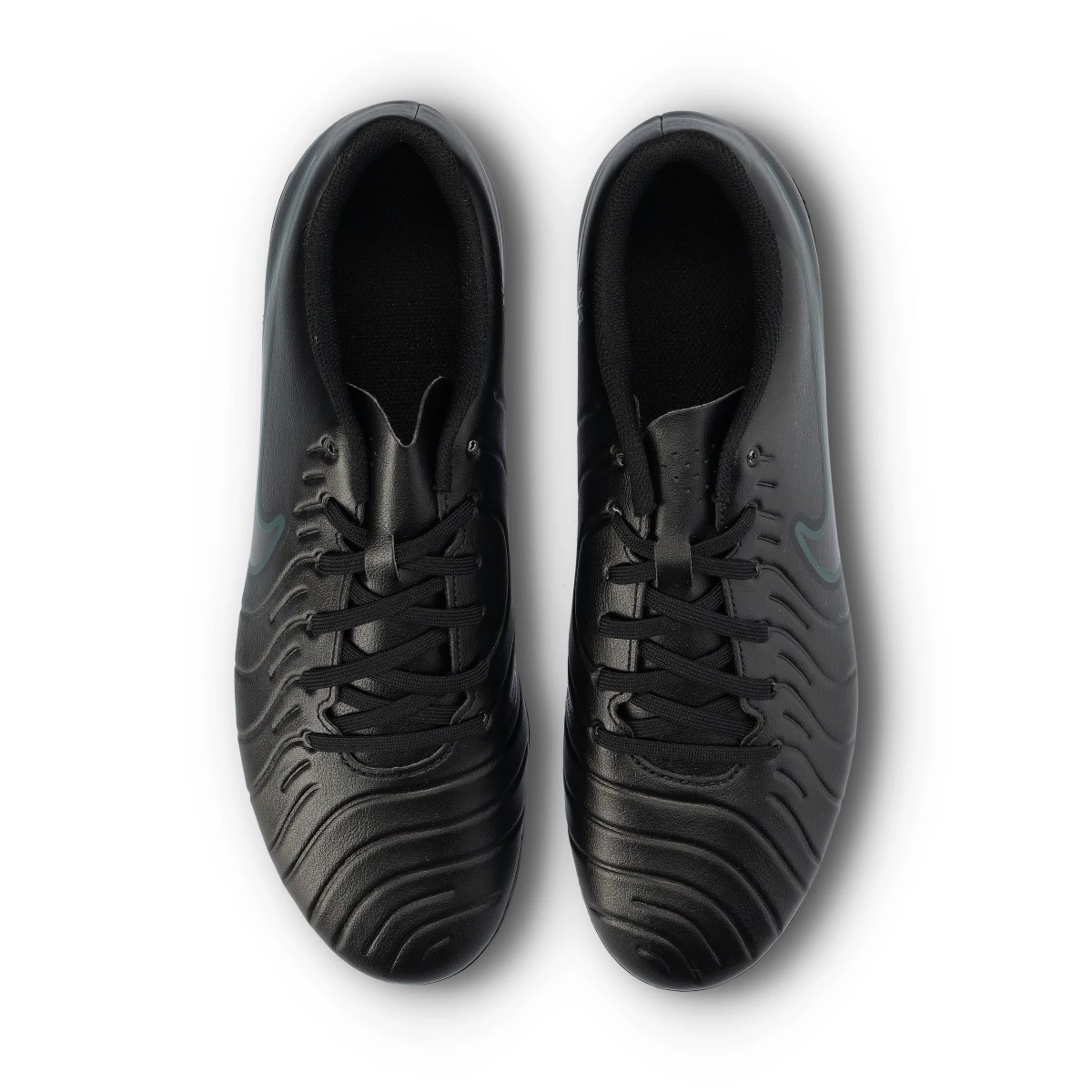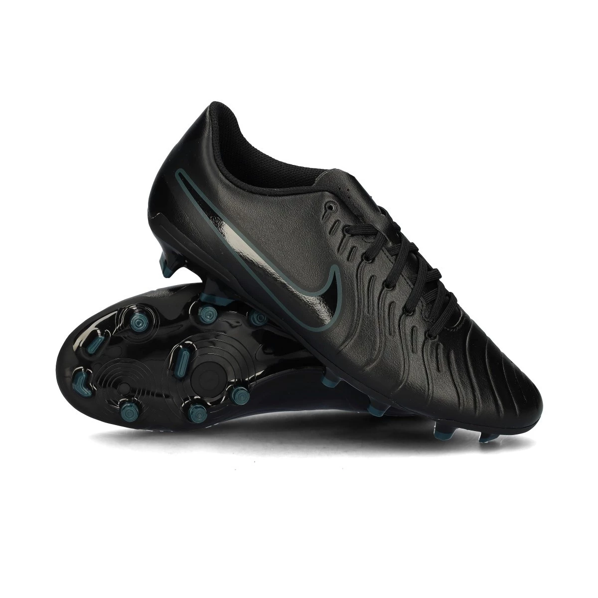 Chaussures de football Nike Tiempo Legend 10 Club FG/MG. Chaussures en cuir synthétique, à utiliser sur les terrains en gazon naturel ou artificiel. Chaussures de la gamme de base Black-Black-Deep Jungle.
