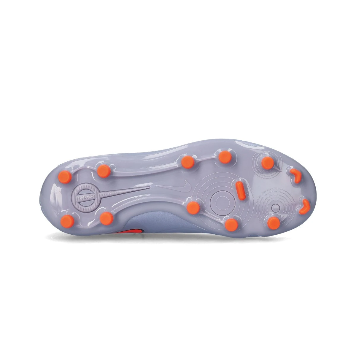 Semelle FG en TPU sur laquelle on retrouve une distribution de crampons de forme conique qui facilitent les rotations rapides et apportent une meilleure traction dans les accélérations explosives.