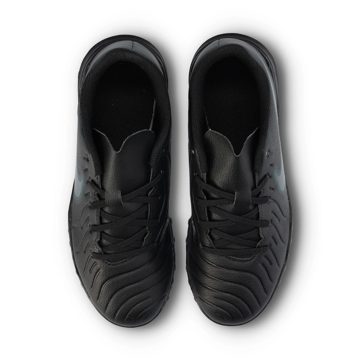 Chaussure de football Tiempo Legend 10 Club Turf pour enfant. Chaussure en cuir synthétique, pour une utilisation sur les terrains extérieurs. Chaussures de la gamme de base en coloris Black-Black-Deep Jungle.