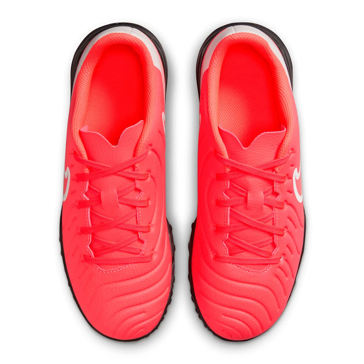 Chaussures de football Tiempo Legend 10 Club Turf pour garçons. Chaussure en cuir synthétique, pour une utilisation sur les terrains extérieurs. Chaussures de la gamme Basic en couleur Hot Lava-White.