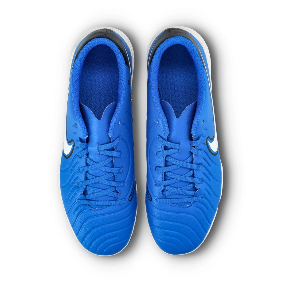 Chaussure de football Tiempo Legend 10 Club Turf. Chaussure en cuir synthétique, pour une utilisation sur les terrains extérieurs. Chaussures de la gamme de base en Signal Blue-White.