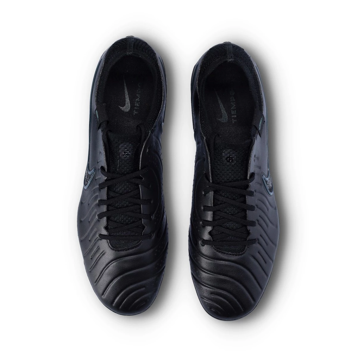 Chaussures de football Nike Tiempo Legend 10 Elite AG. Chaussure avec cuir Flytouch plus pour une utilisation sur les terrains en gazon artificiel. Chaussures haut de gamme en Black-Black-Deep Jungle.