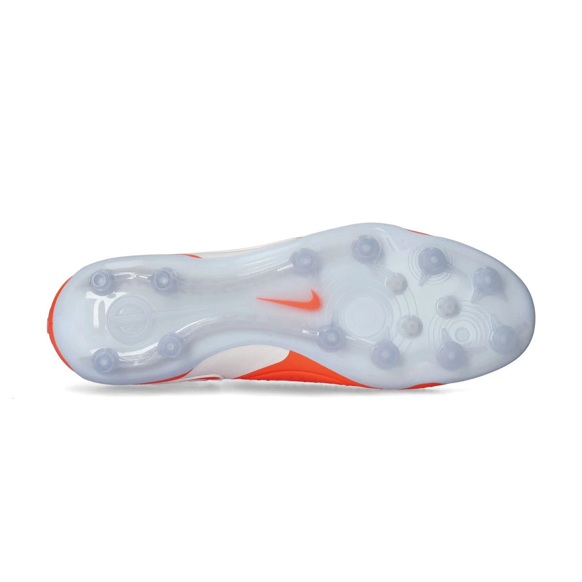 Chaussures de football Nike Tiempo Legend 10 Elite AG. Chaussures destinées à être utilisées sur des terrains en gazon artificiel. Chaussures haut de gamme en couleur Hot Lava-White.