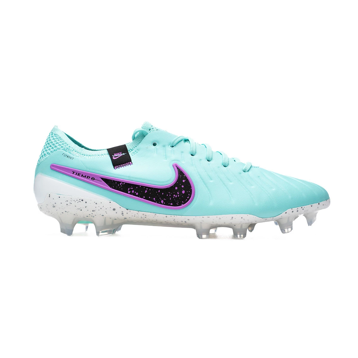 Chaussures de football Nike Tiempo Legend 10 Elite FG. Chaussures à utiliser sur des terrains en gazon naturel. Chaussures haut de gamme en Hyper Turq-Black-Fuchsia Dream.