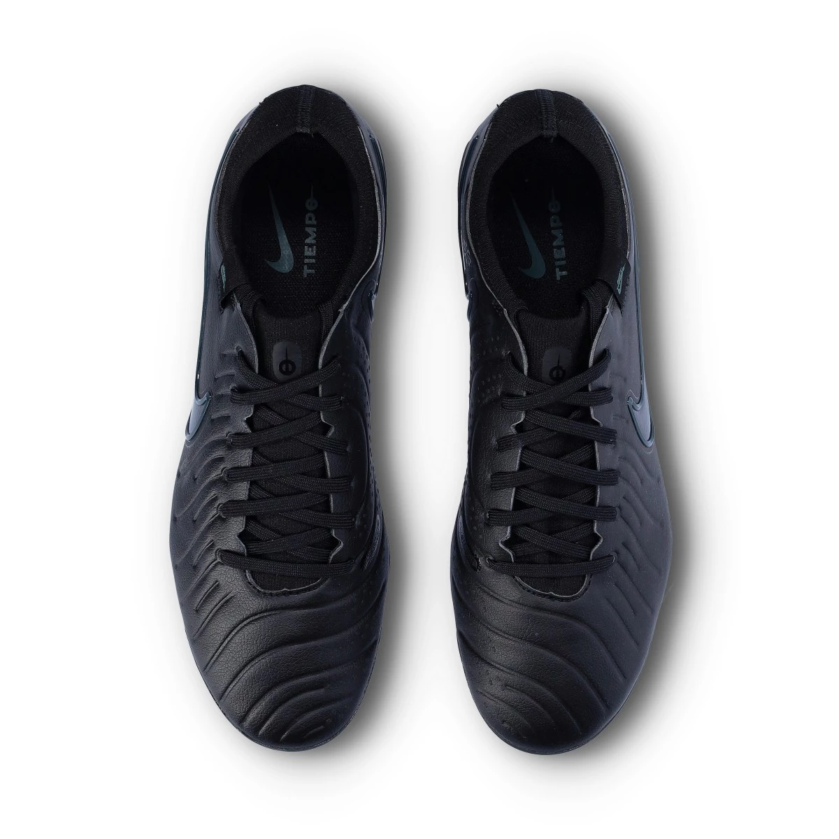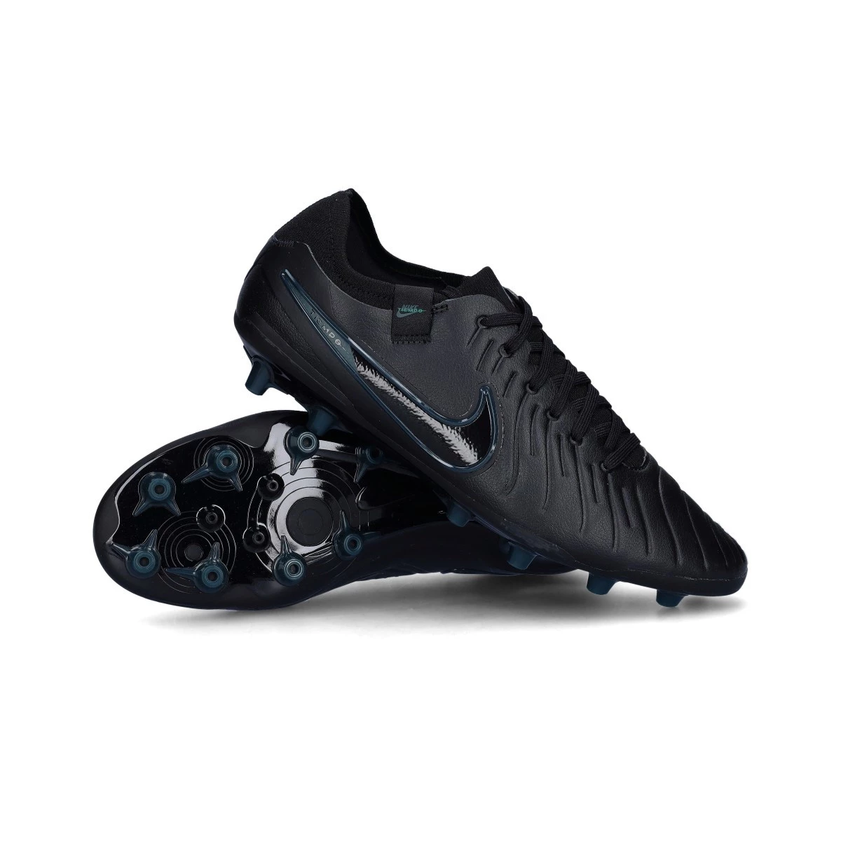 Chaussures de football Nike Tiempo Legend 10 Pro AG. Chaussure destinée à être utilisée sur des terrains en gazon artificiel. Chaussures haut de gamme en Black-Black-Deep Jungle.