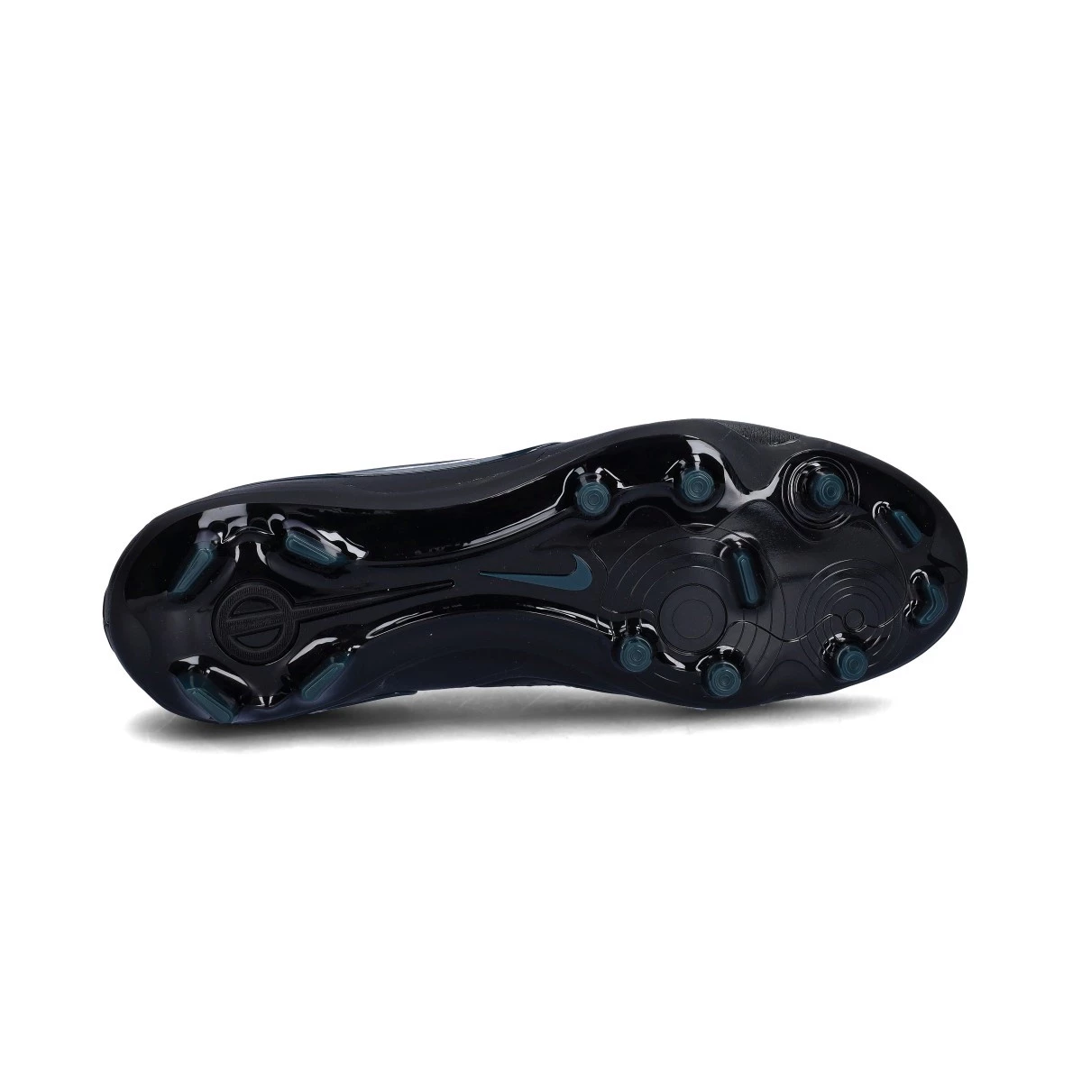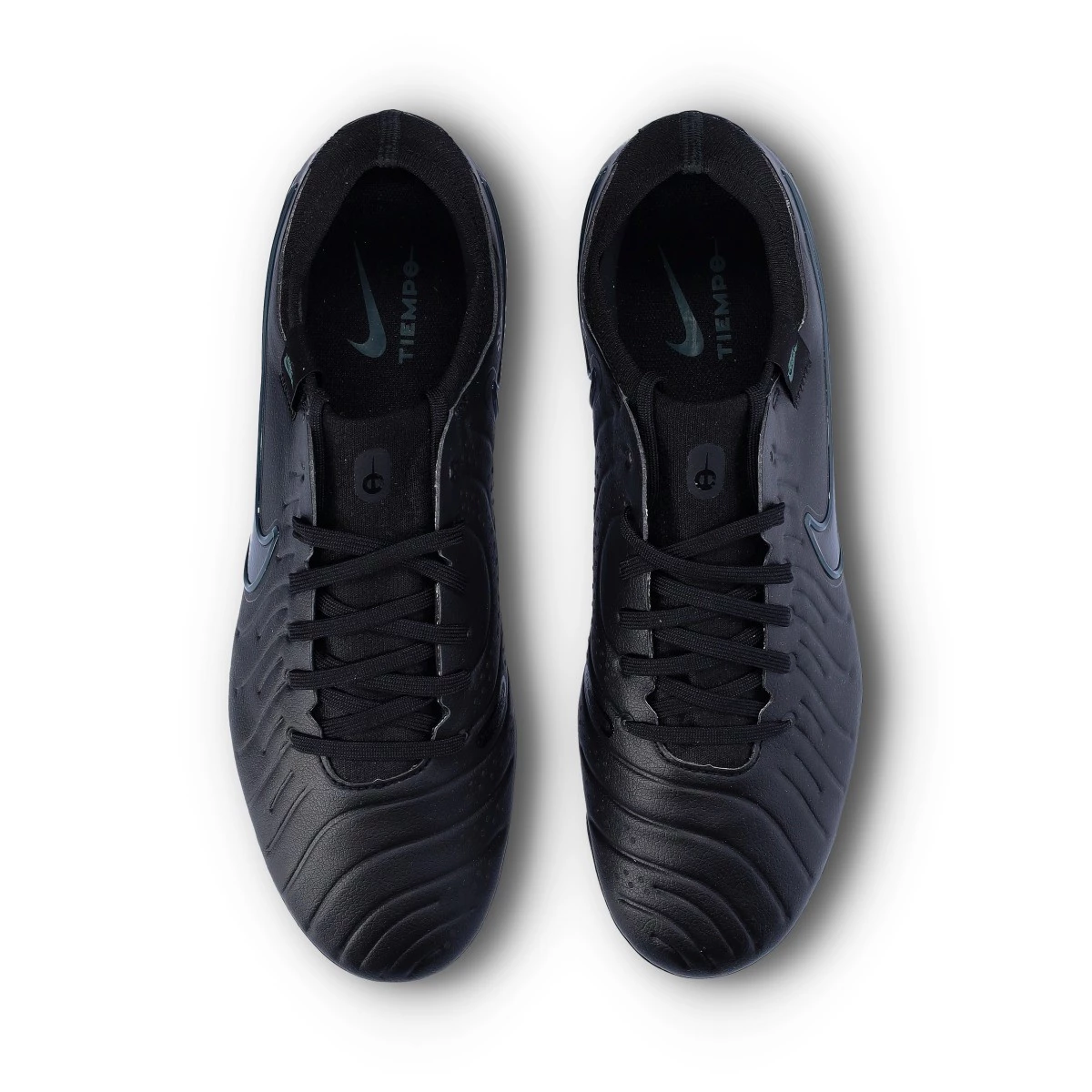 Chaussure de football Nike Tiempo Legend 10 Pro FG. Chaussure destinée à être utilisée sur des terrains en gazon naturel. Chaussures haut de gamme en Black-Black-Deep Jungle.