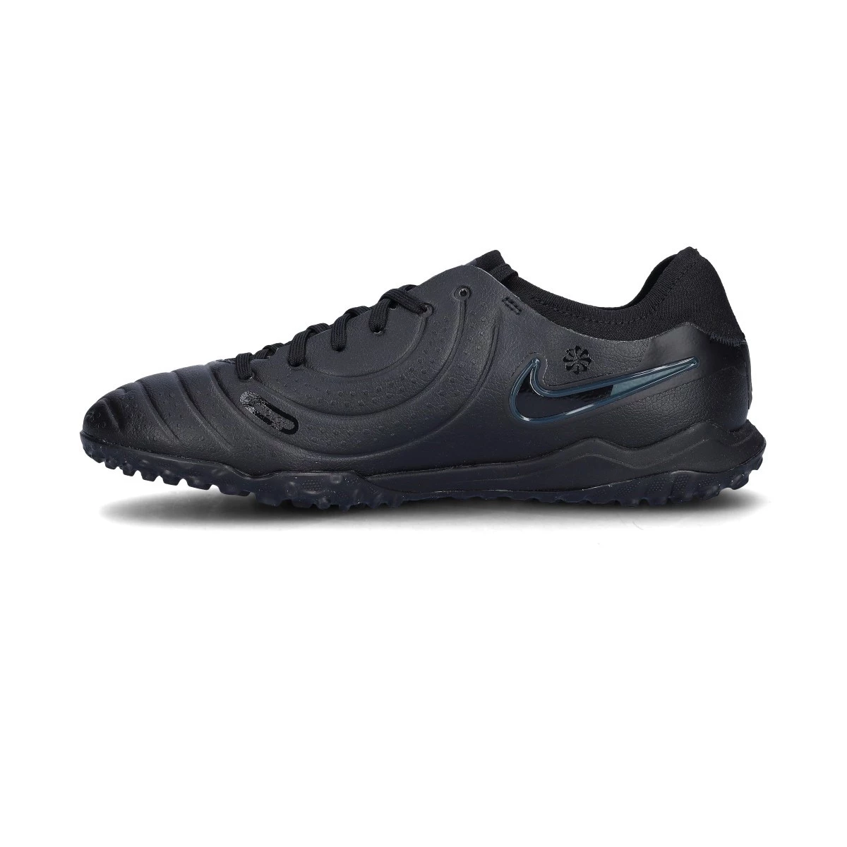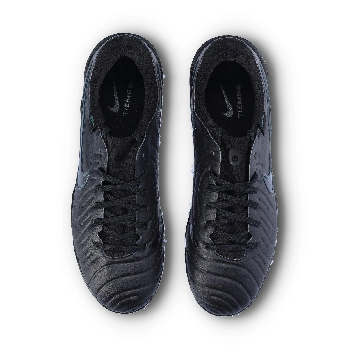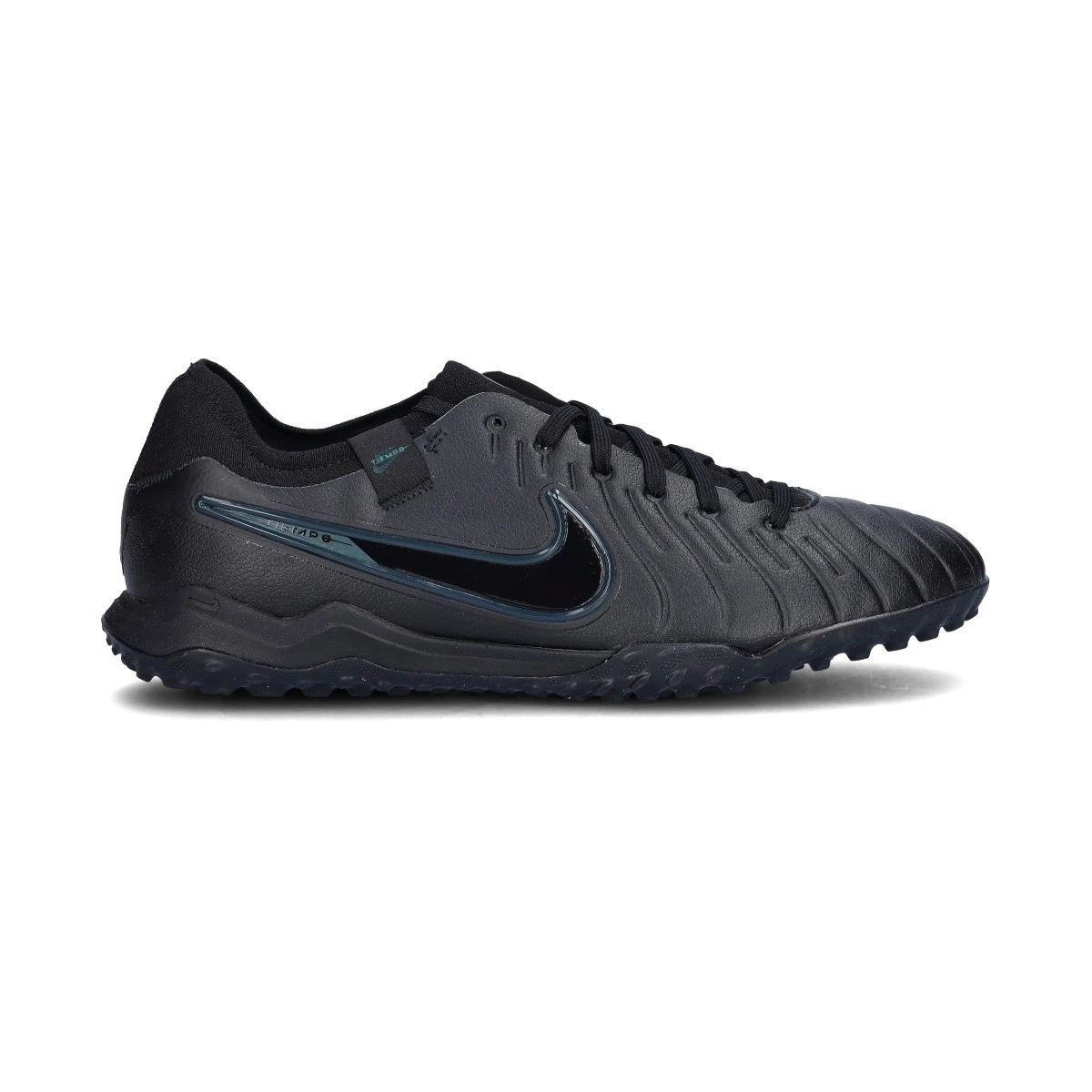 Chaussures de football Nike Tiempo Legend 10 Pro Turf. Chaussures pour utilisation sur gazon artificiel, moquette ou terrains en béton. Chaussures de milieu de gamme en coloris Black-Black-Deep Jungle