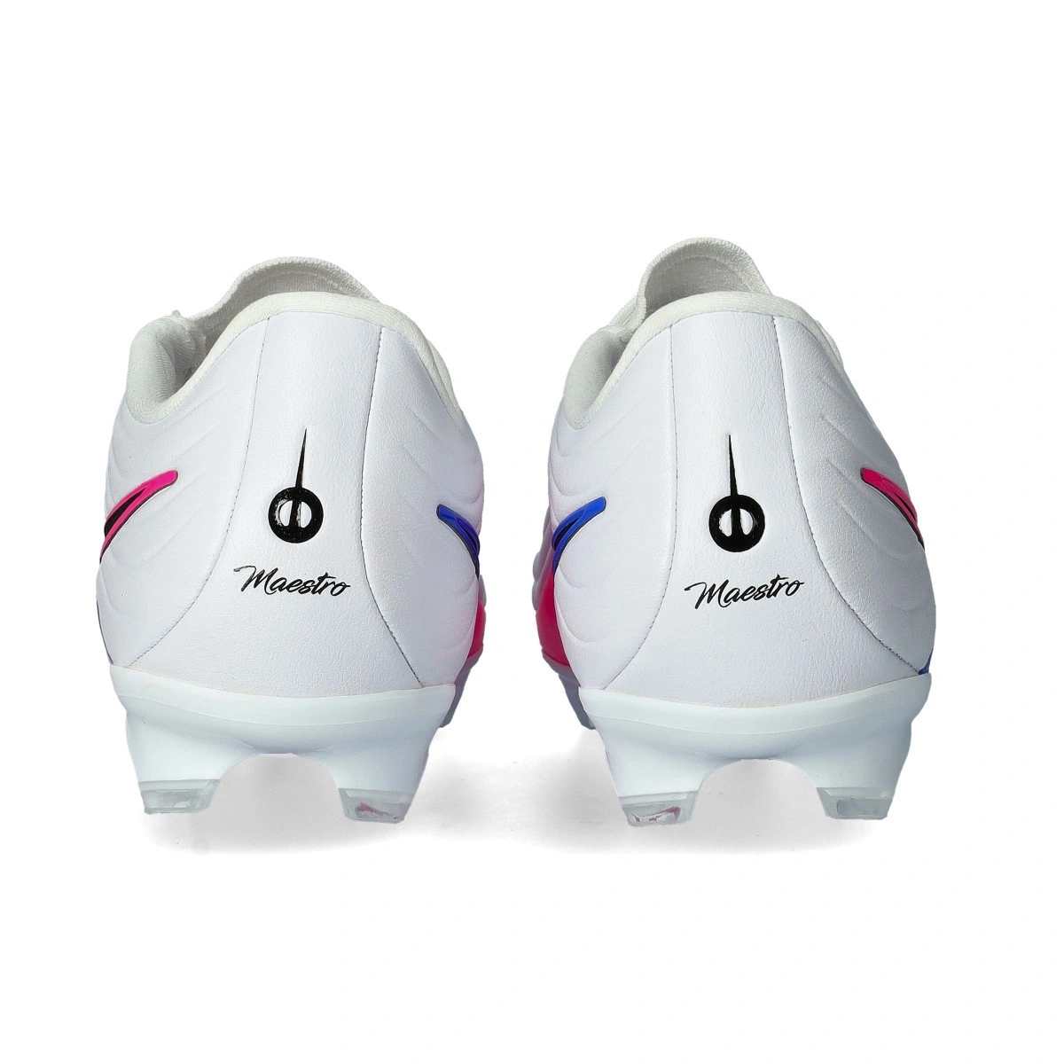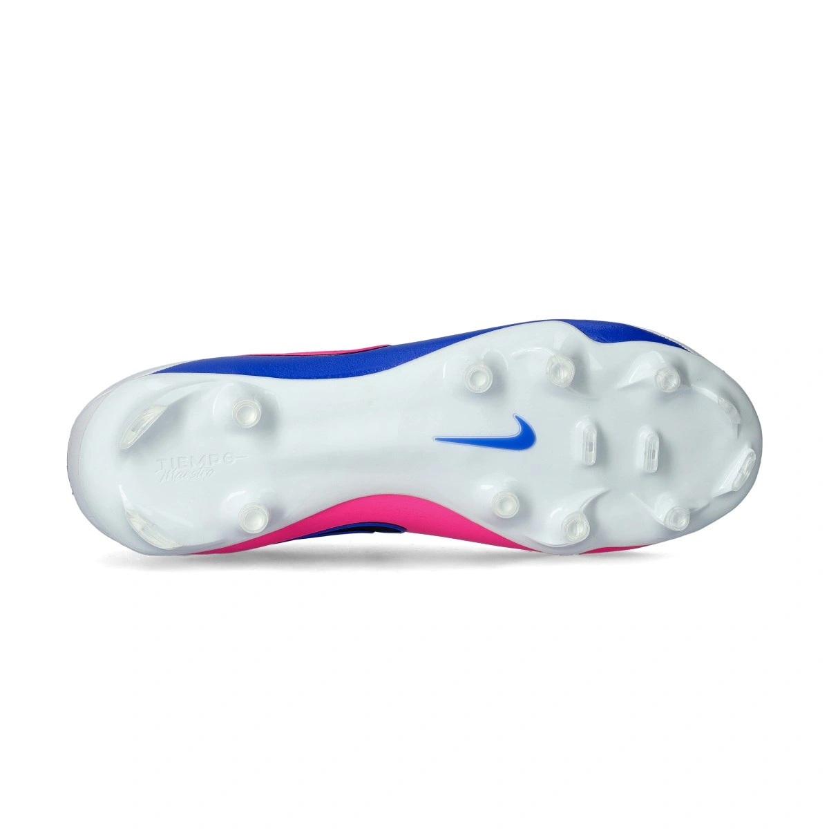 Chaussures de football Nike Tiempo Maestro Academy FG/MG. Chaussures pour terrains en gazon naturel. Chaussures d'entrée de gamme en coloris White-Black-Racer Blue-Pink Blast.