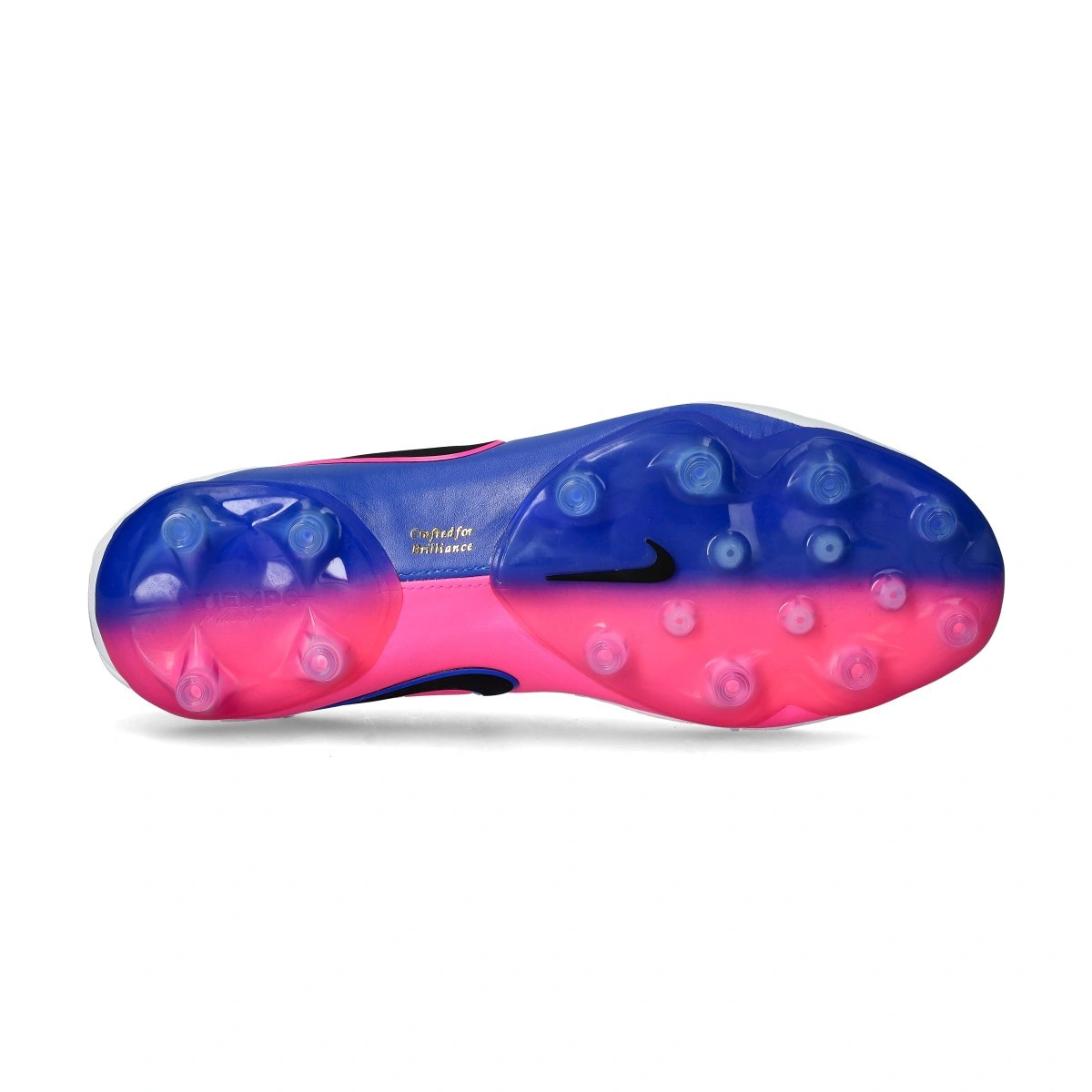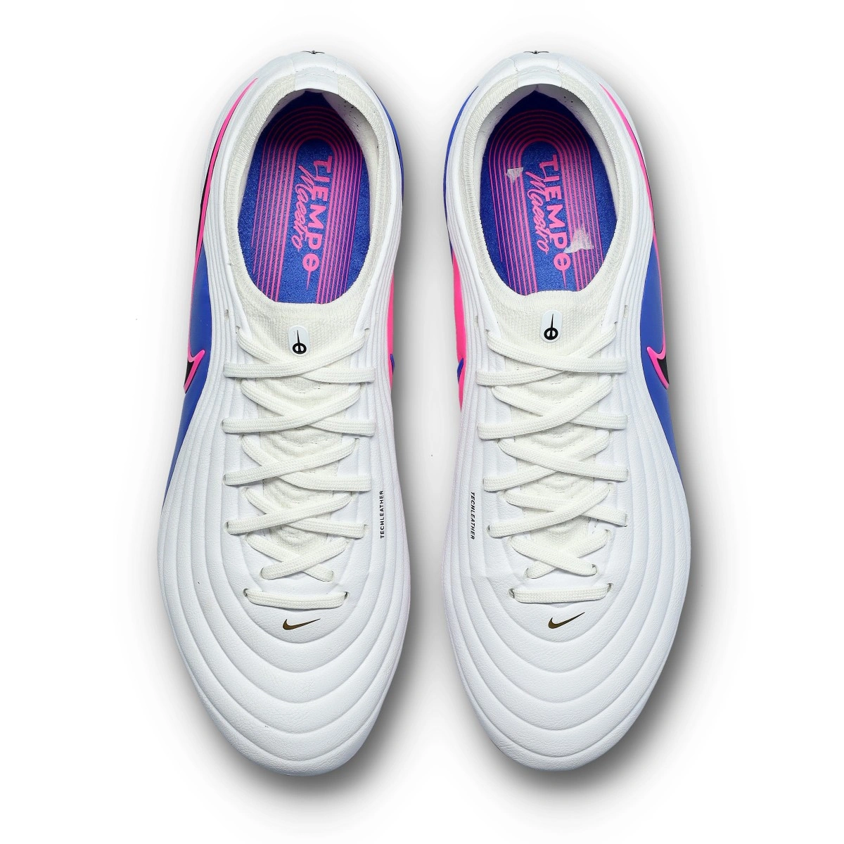 Chaussure de football Nike Tiempo Maestro Elite AG-Pro pour adultes. Chaussure pour terrains en gazon artificiel. Chaussures haut de gamme en coloris White-Black-Racer Blue-Pink Blast.