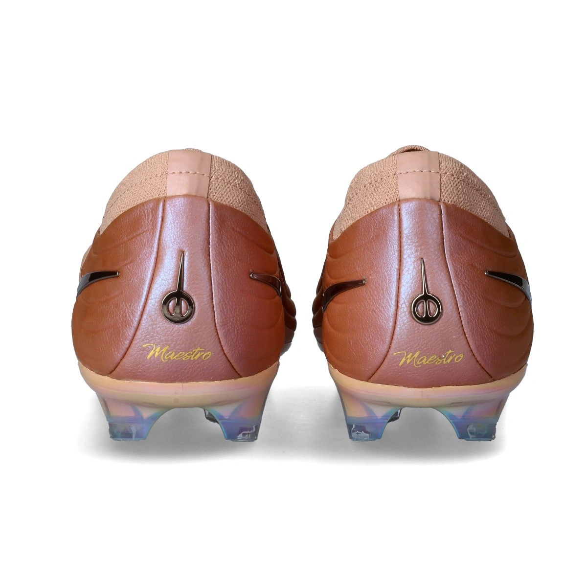 Chaussure de football Nike Tiempo Maestro Elite FG pour adultes. Chaussure avec cuir Flytouch pour terrains en herbe naturelle. Chaussures haut de gamme en couleur Metallic Red Bronze-Metallic Rose Gold.