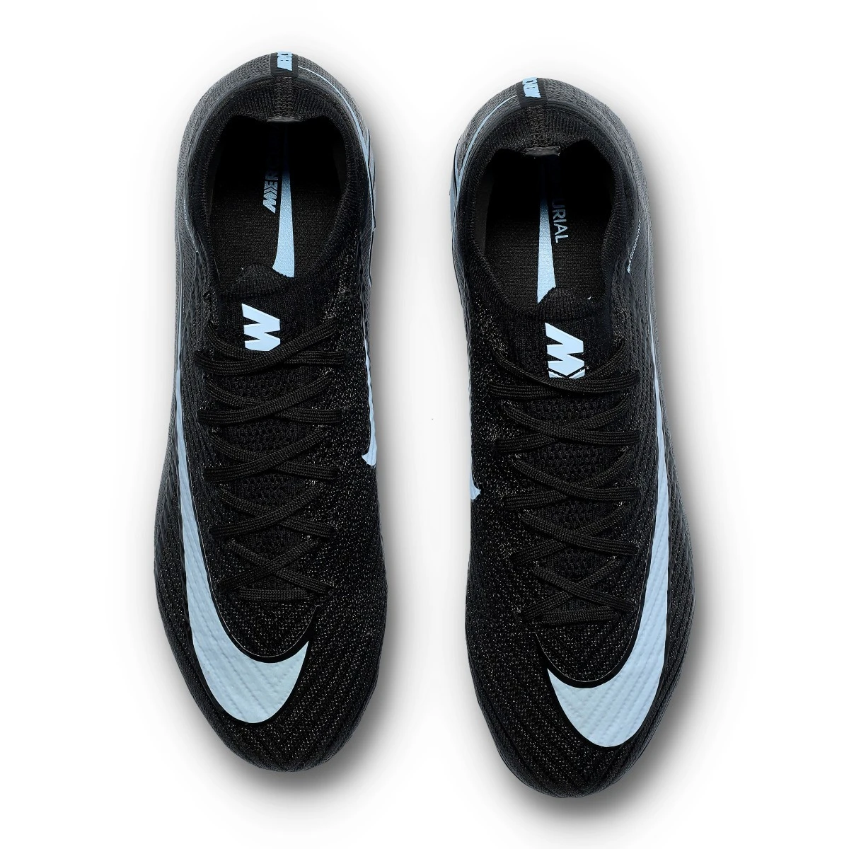 Chaussures de football Nike Air Zoom Mercurial Vapor 16 Elite AG-Pro pour adultes. Chaussures filetées, sans support de cheville, pour utilisation sur terrains en gazon artificiel. Chaussures haut de gamme pour les joueurs rapides en Black-Ice Blue.