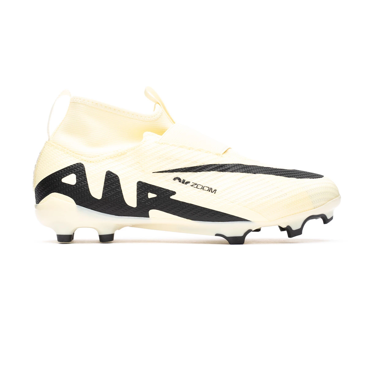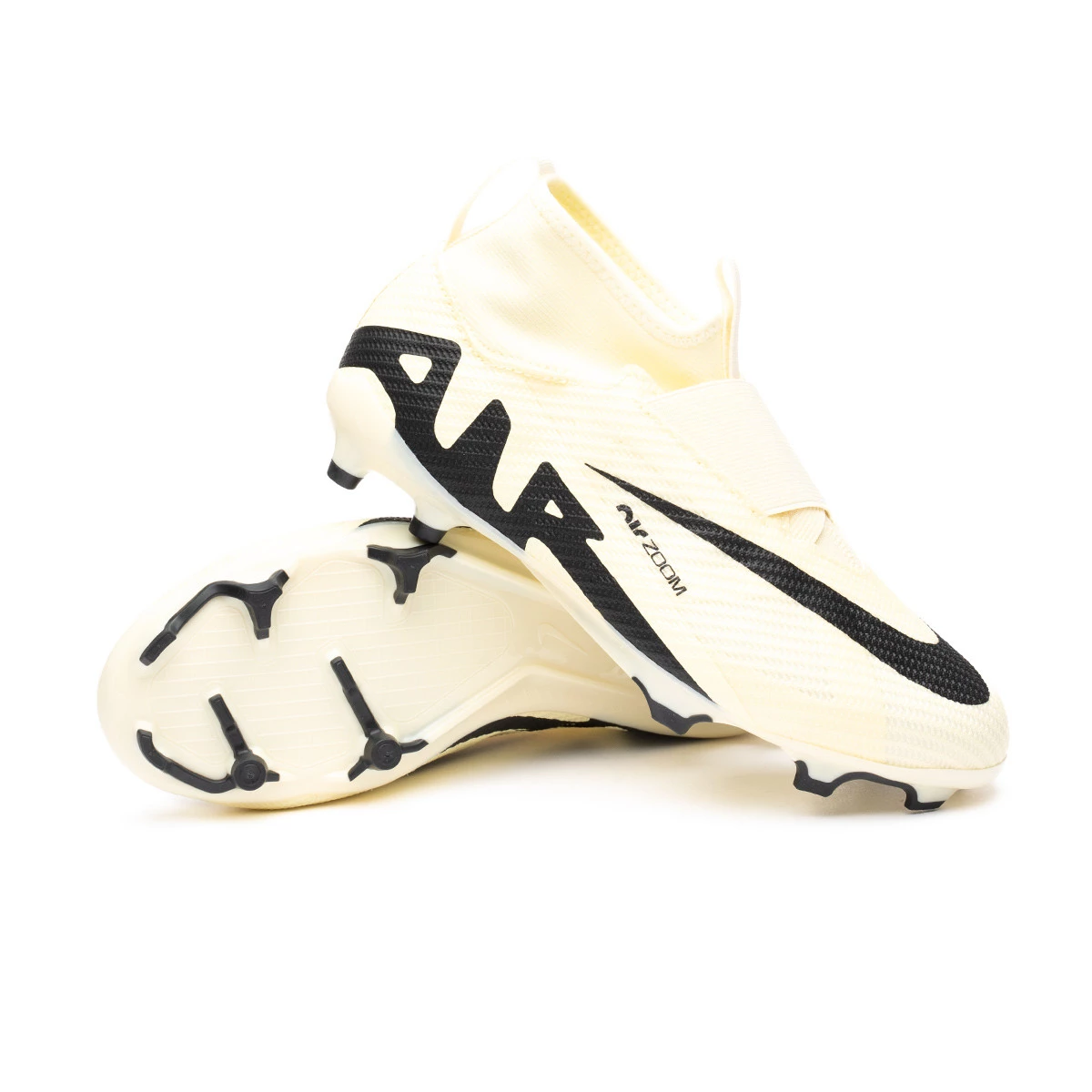 Chaussure de football Nike Zoom Mercurial Superfly 9 Pro FG. Chaussures en fil, avec chaussette à utiliser sur les terrains en gazon naturel sec ou humide. Chaussures haut de gamme en couleur Lemonade-Black.
