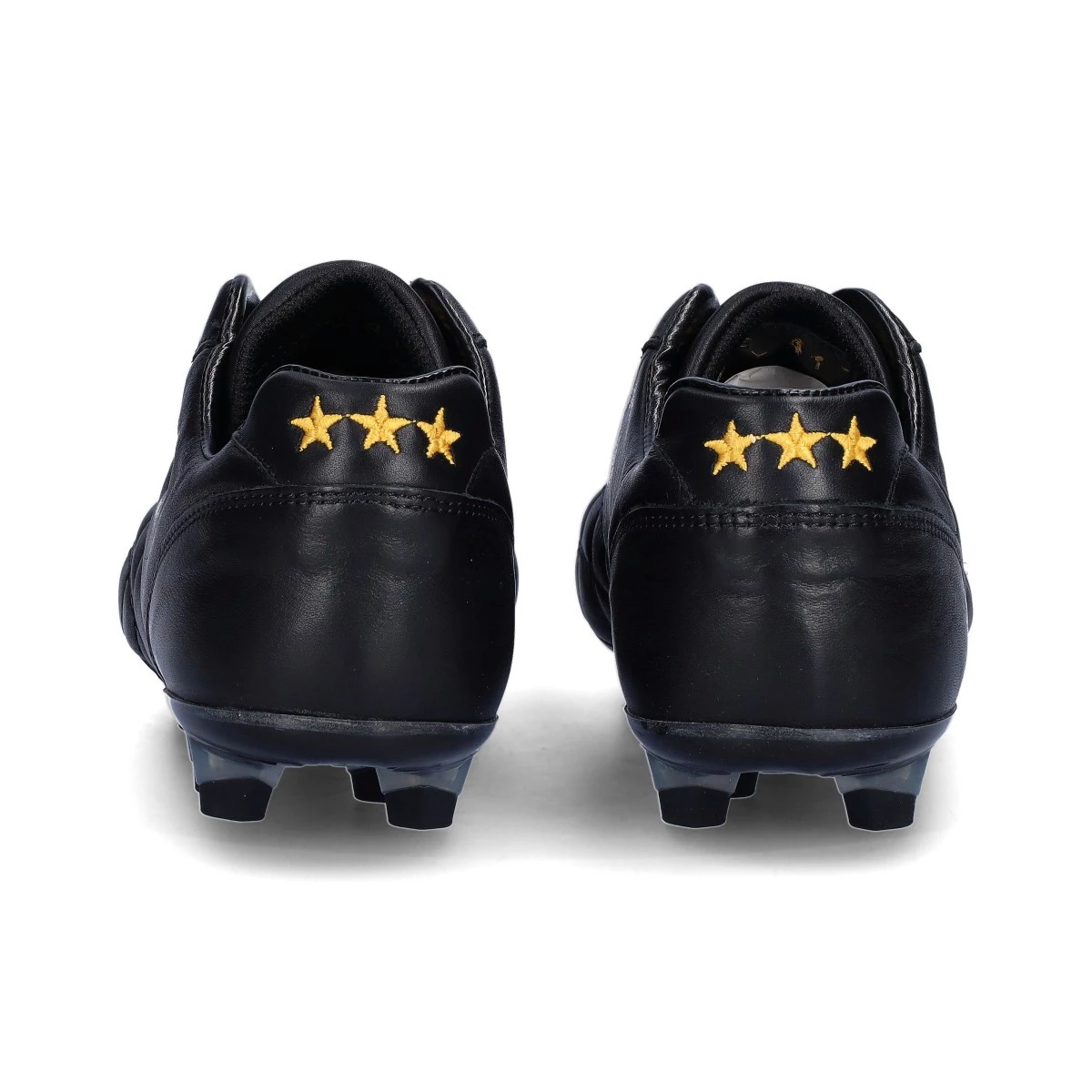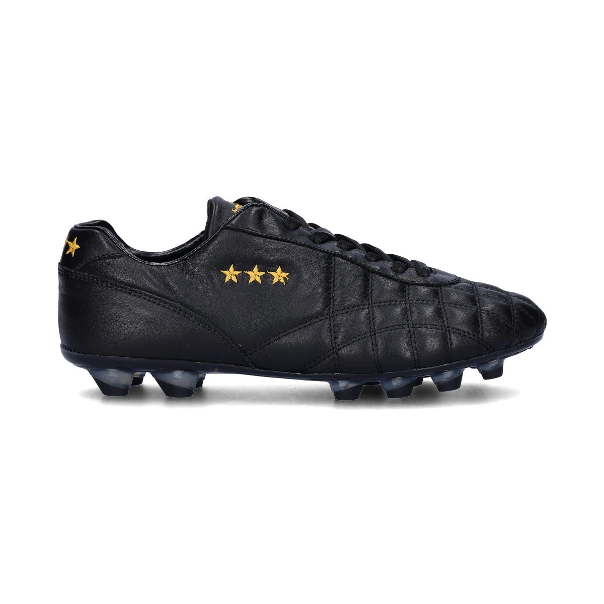 Chaussure de football Pantofola d'Oro Del Duca FG. Chaussure en cuir parfaite pour les terrains fermes en gazon naturel. Chaussure haut de gamme en noir.