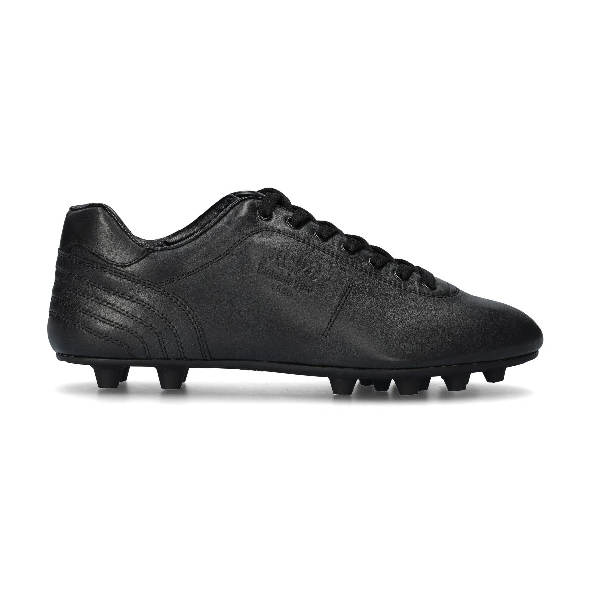 Chaussure de football Pantofola d´Oro Lazzarini Vitello AG. Chaussure de couleur noire pour terrains en gazon artificiel.