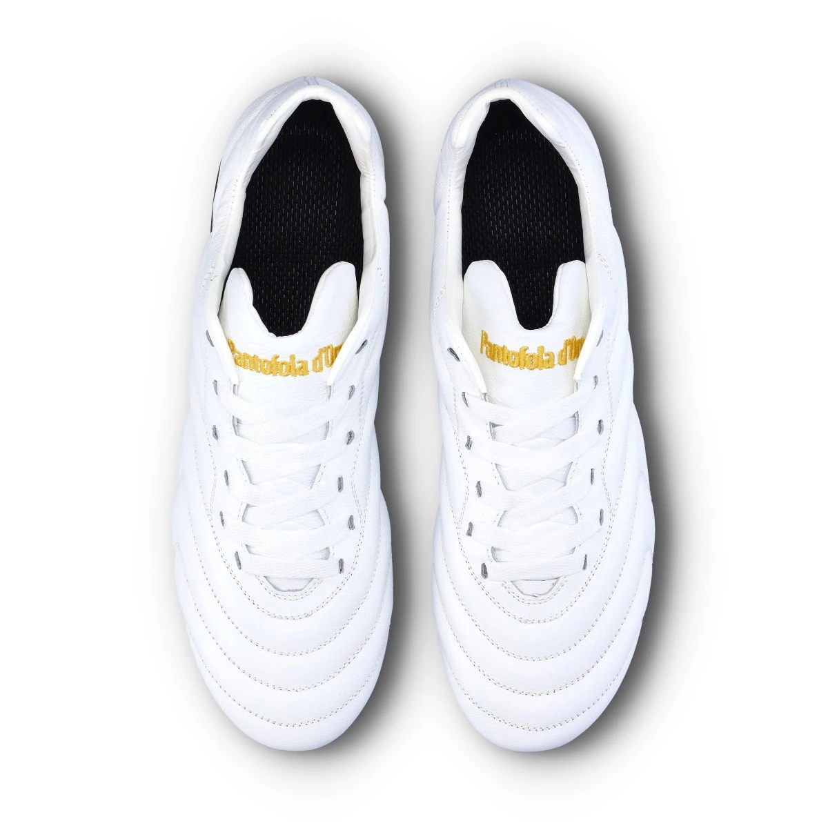 Chaussure de football Pantofola d'Oro Superleggera 2.0 FG. Chaussure en cuir idéale pour les terrains en gazon naturel ferme en couleur. Chaussure haut de gamme en White