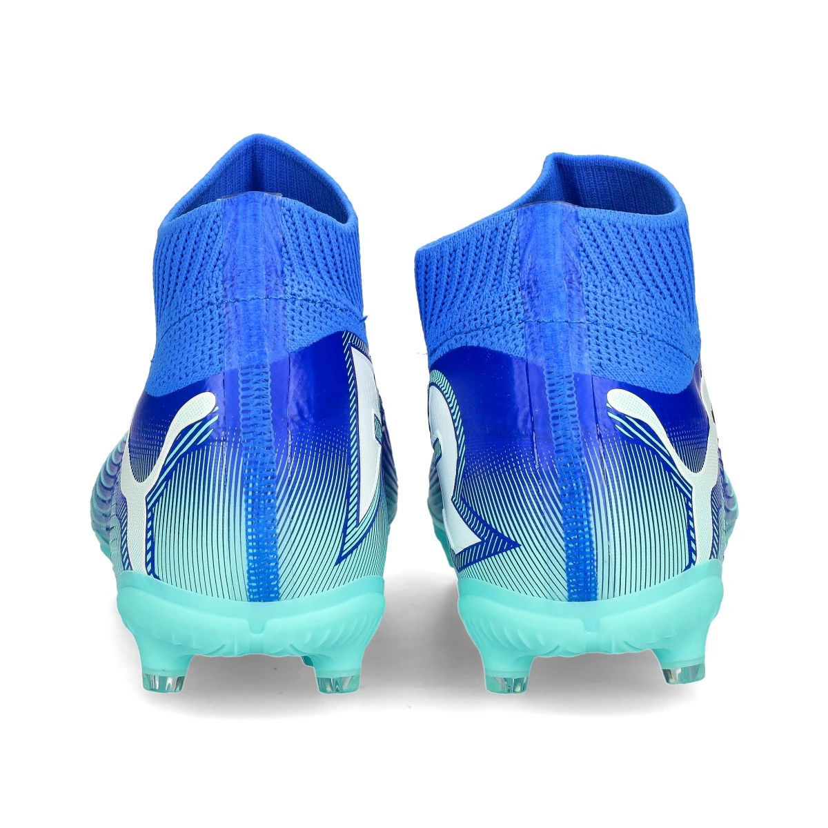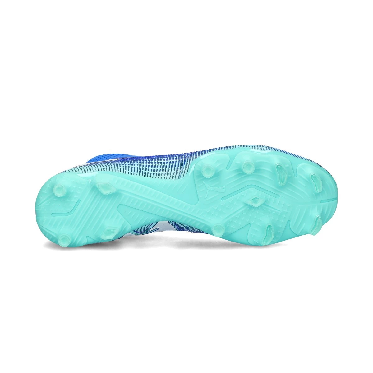 Chaussures de football Puma Future 7 Match+ LL FG/AG. Chaussures de football synthétiques, pour terrains en gazon naturel et artificiel. Pour les joueurs offensifs, coloris Bluemazing-White-Electric Peppermint.