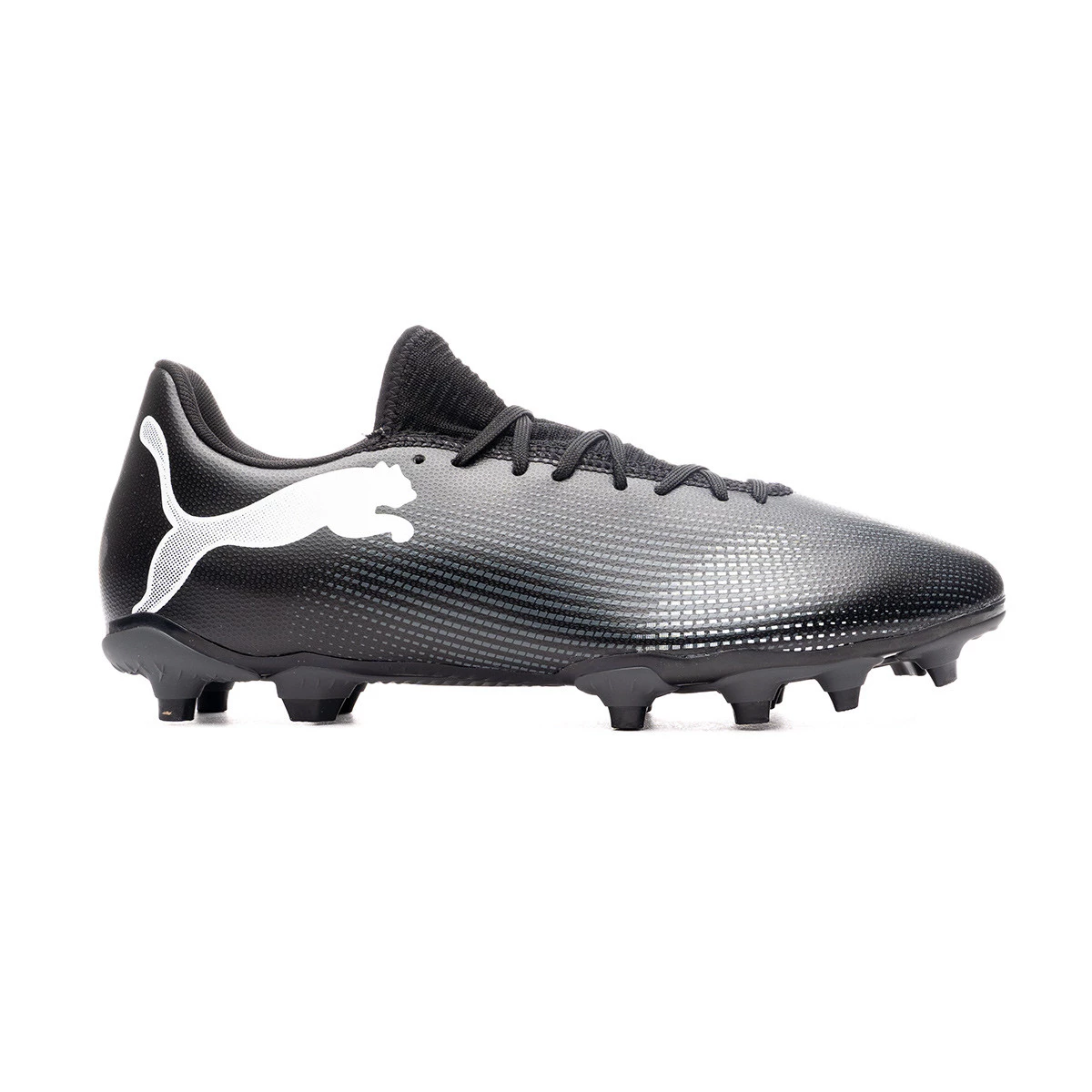 Chaussure de football Puma Future 7 Play FG/AG. Chaussures synthétiques à utiliser dans les terrains en gazon artificiel et gazon naturel. Chaussures bas de gamme en couleur Black-White.
