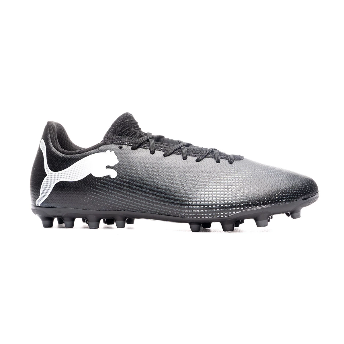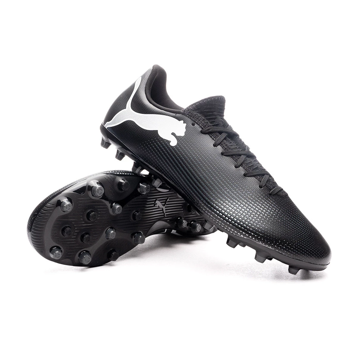 Chaussures de football Puma Future 7 Play MG. Chaussures synthétiques pour terrains en gazon artificiel, en moquette ou en terre. Chaussures d'entrée de gamme pour les joueurs offensifs, en Black-White.