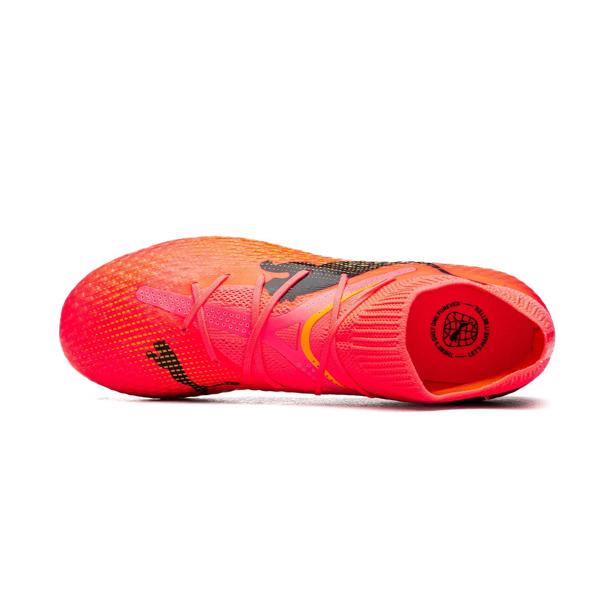 Chaussures de football Puma Future 7 Pro FG/AG pour enfants. Chaussures de football synthétiques, pour terrains en gazon naturel et artificiel. Pour les joueurs offensifs Sunset Glow-Black-Sun Stream.