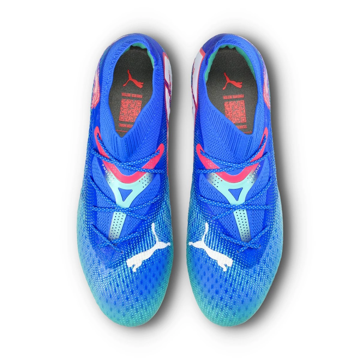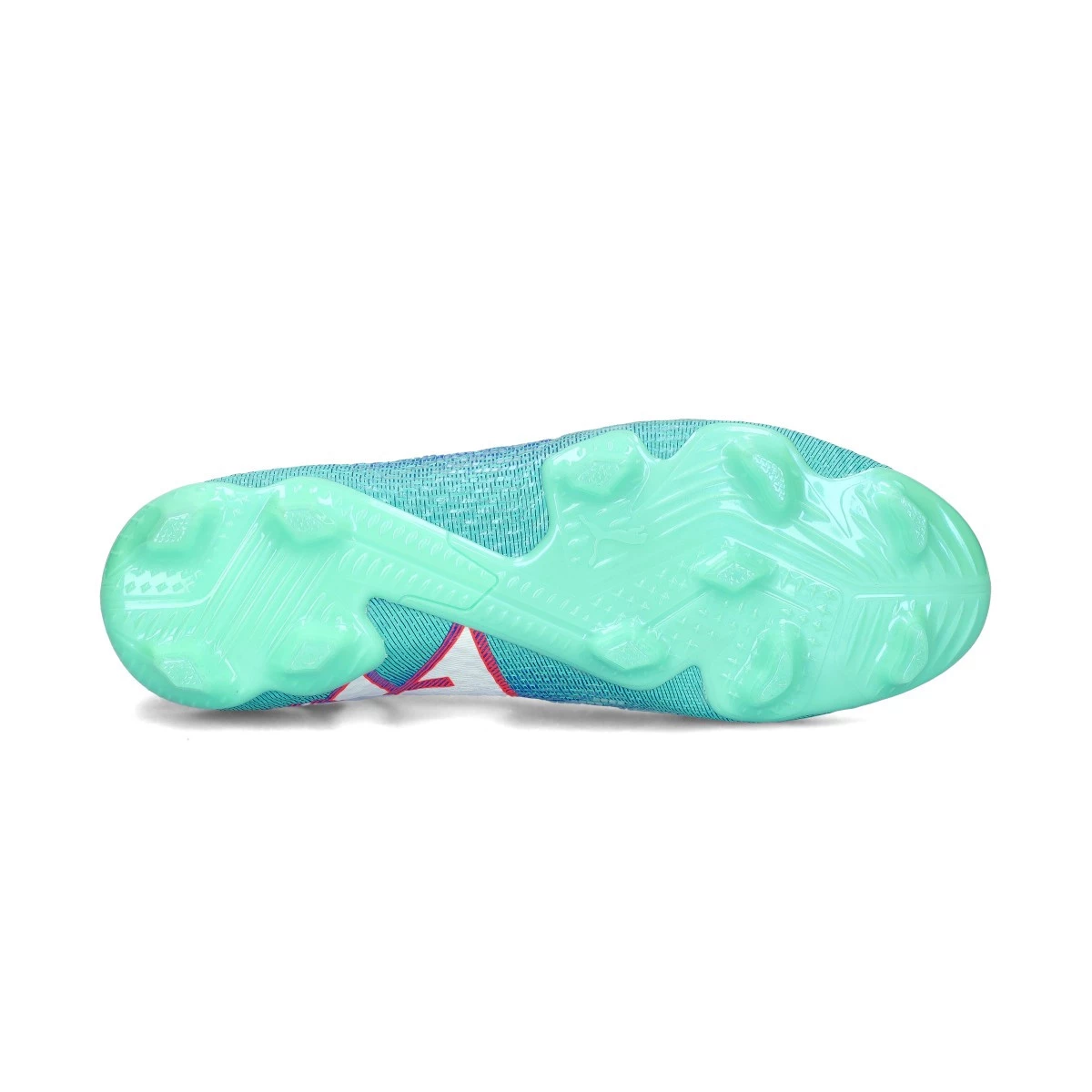 Chaussures de football Puma Future 7 Ultimate FG/AG pour femme. Chaussures en fil, à utiliser sur les terrains en gazon naturel sec ou humide et pour les terrains en gazon artificiel de dernière génération. Chaussures haut de gamme en coloris Bluemazing-White-Electric Peppermint.