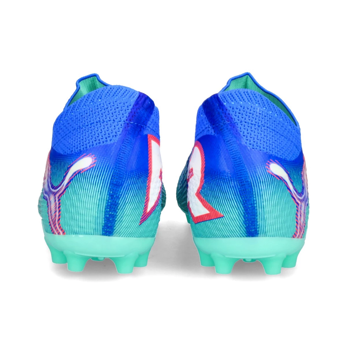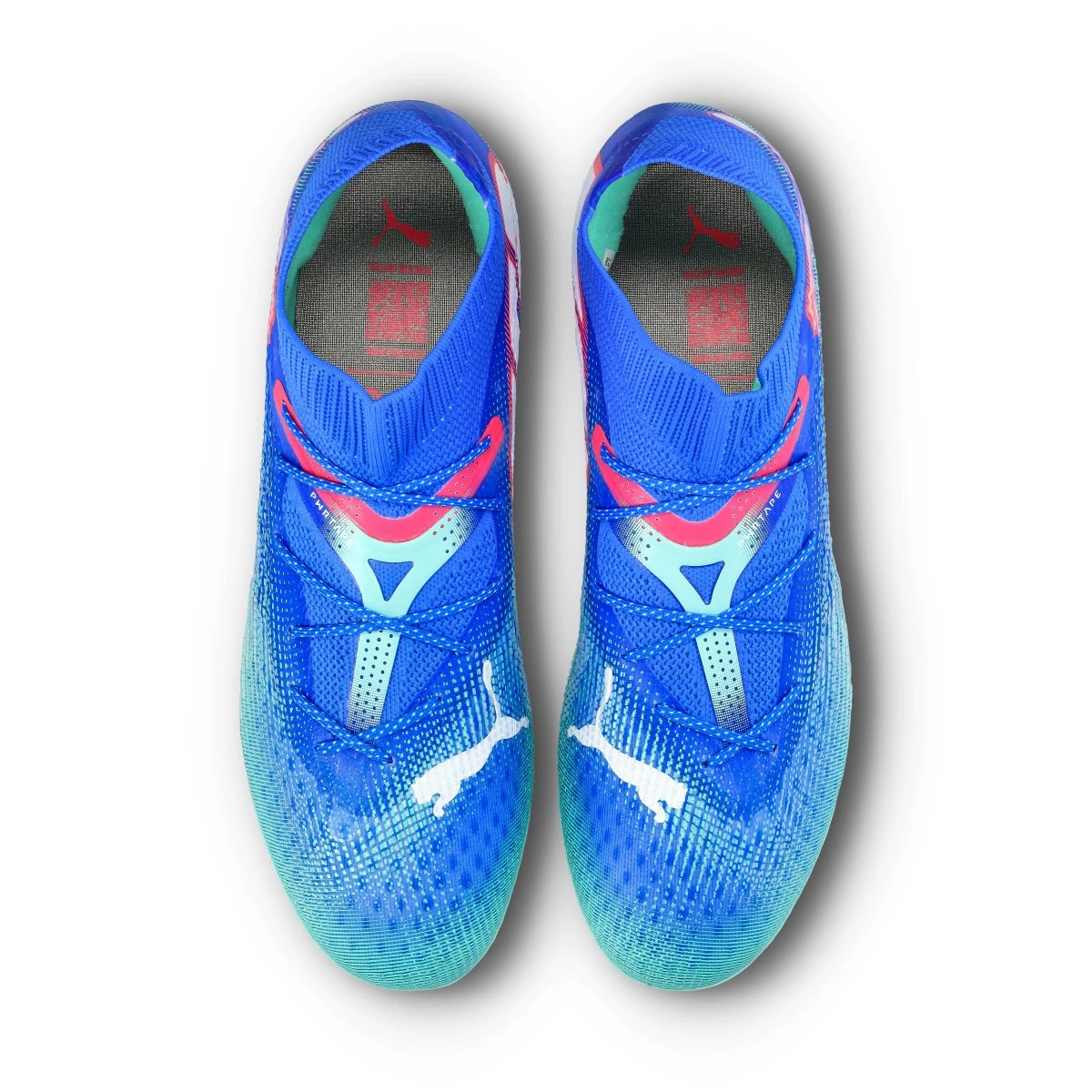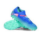 Chaussures de football Puma Future 7 Ultimate MG. Chaussures en fil, pour une utilisation sur les terrains en gazon artificiel de première génération. Chaussures haut de gamme en Bluemazing-PUMA White-Electric Peppermint.